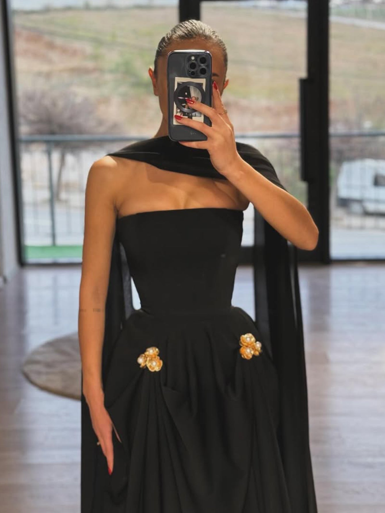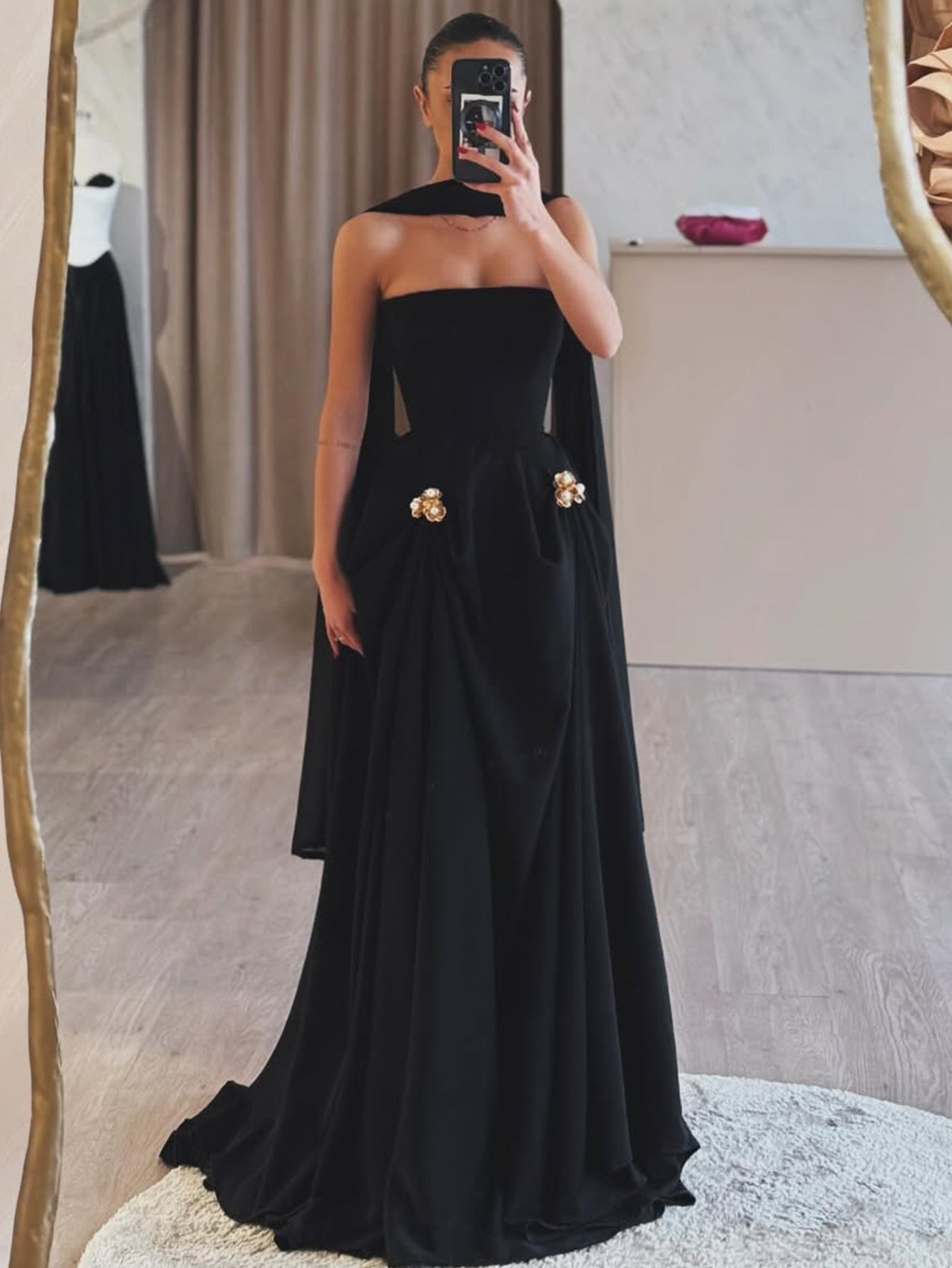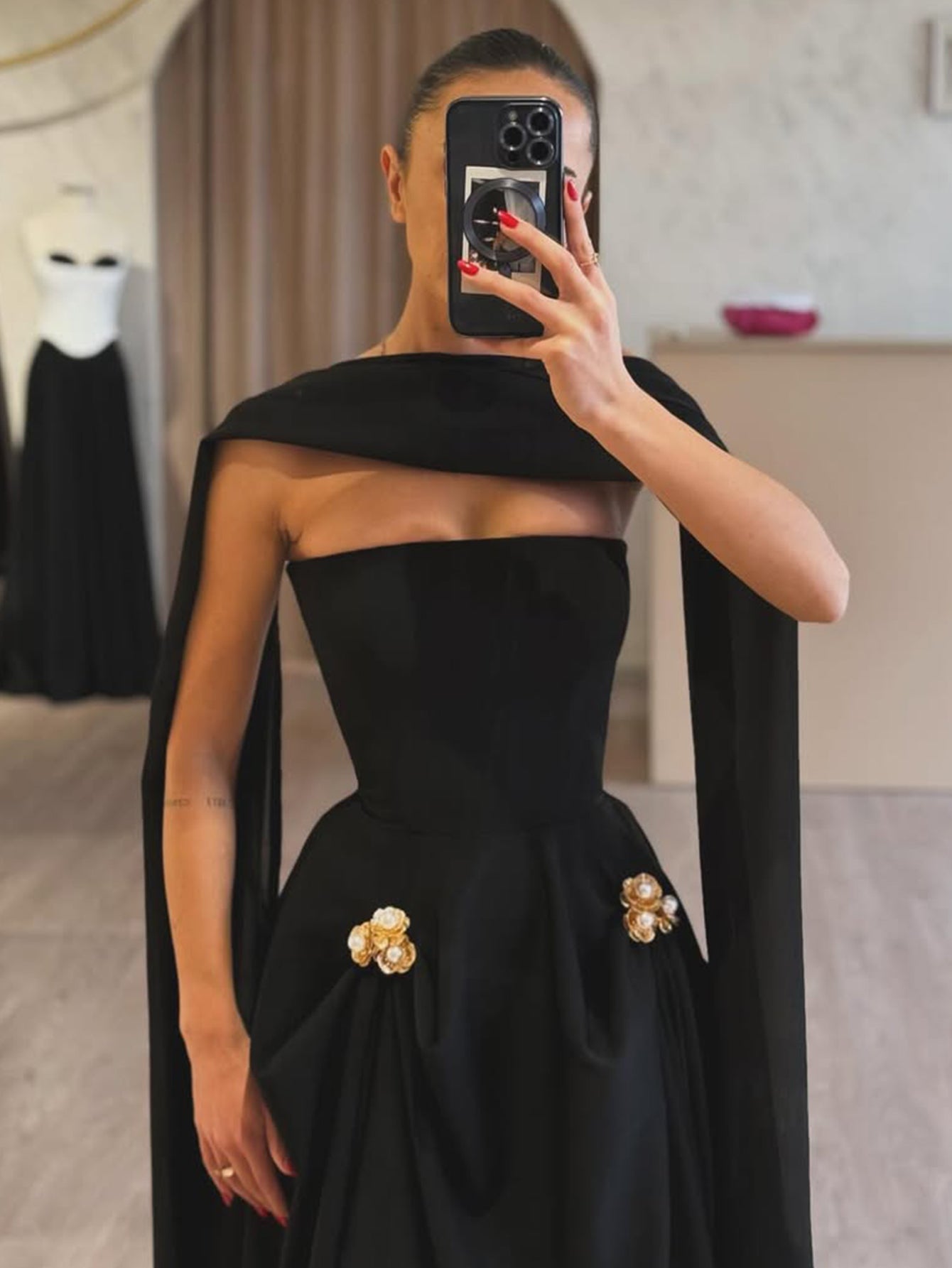 Strapless Ball Gown Prom Dress With Shawl - Black