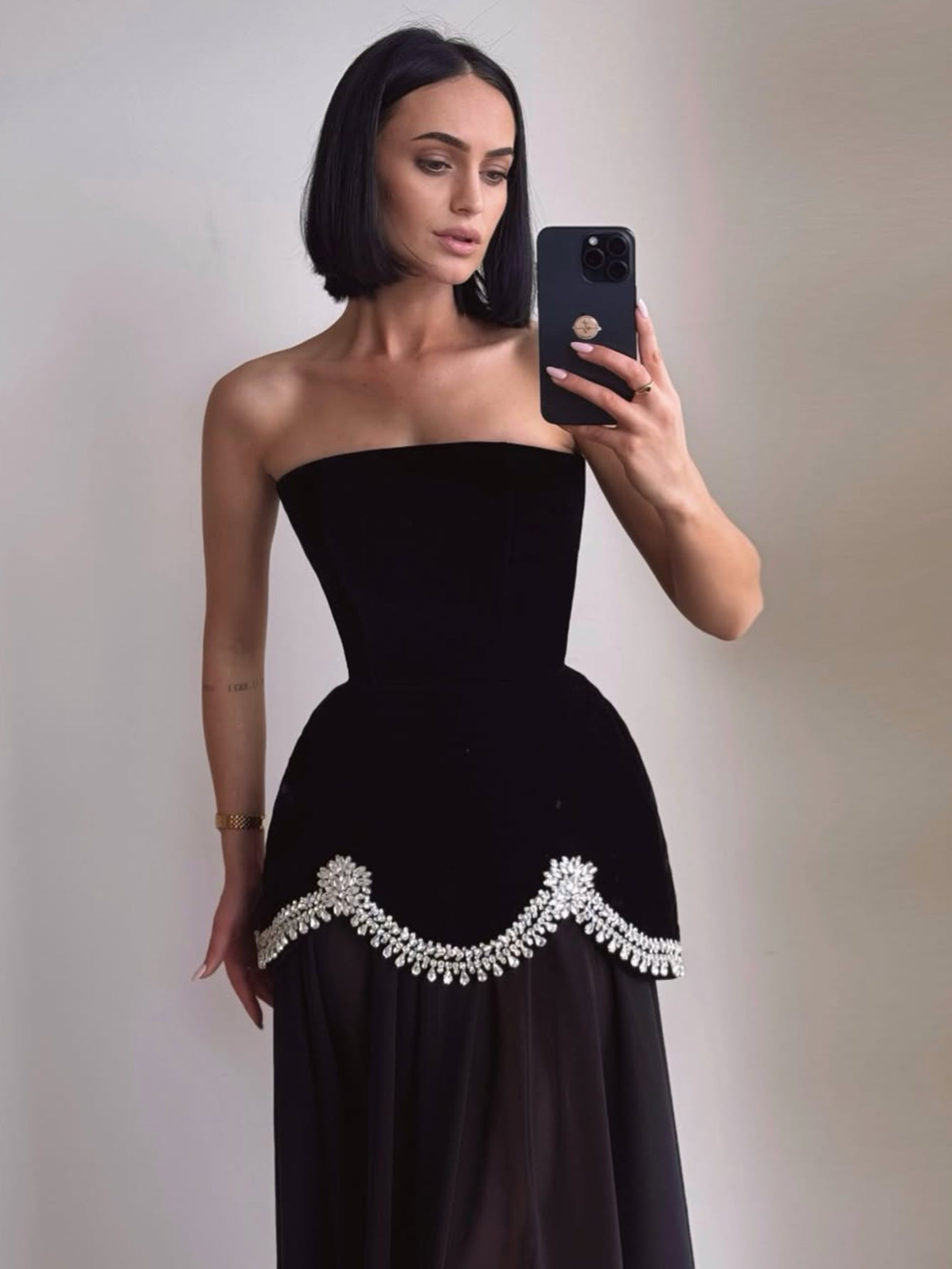Details: Backless, Crystal, Pleated, Sparkly, Corset, Two Pieces