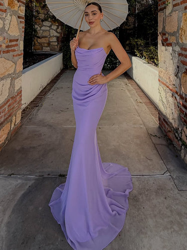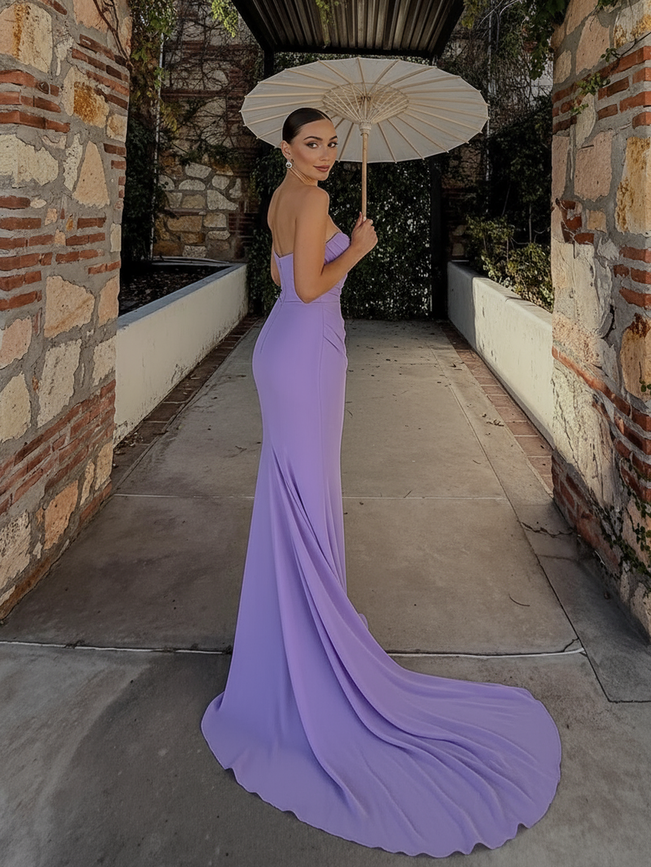 Strapless Ruched Bust Mermaid Long Prom Dress - Lilac