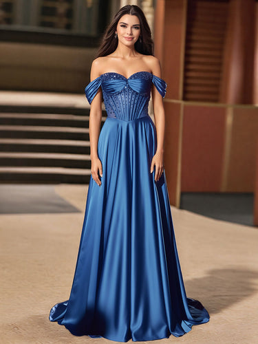 Strapless Beading Illusion Ruched Bodice Mermaid Prom Dress - Blue