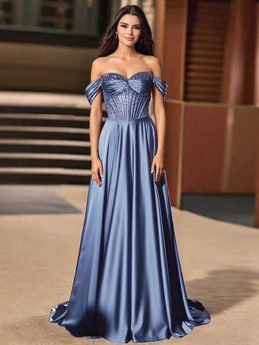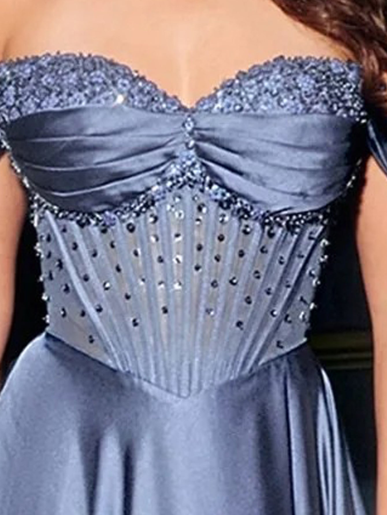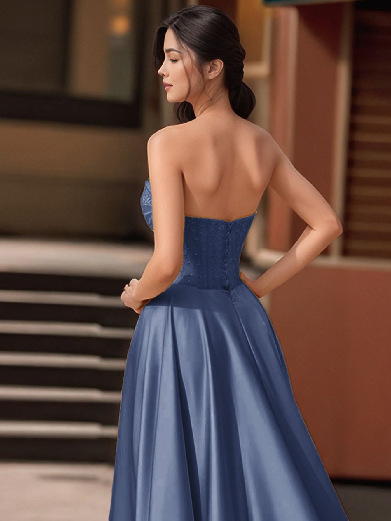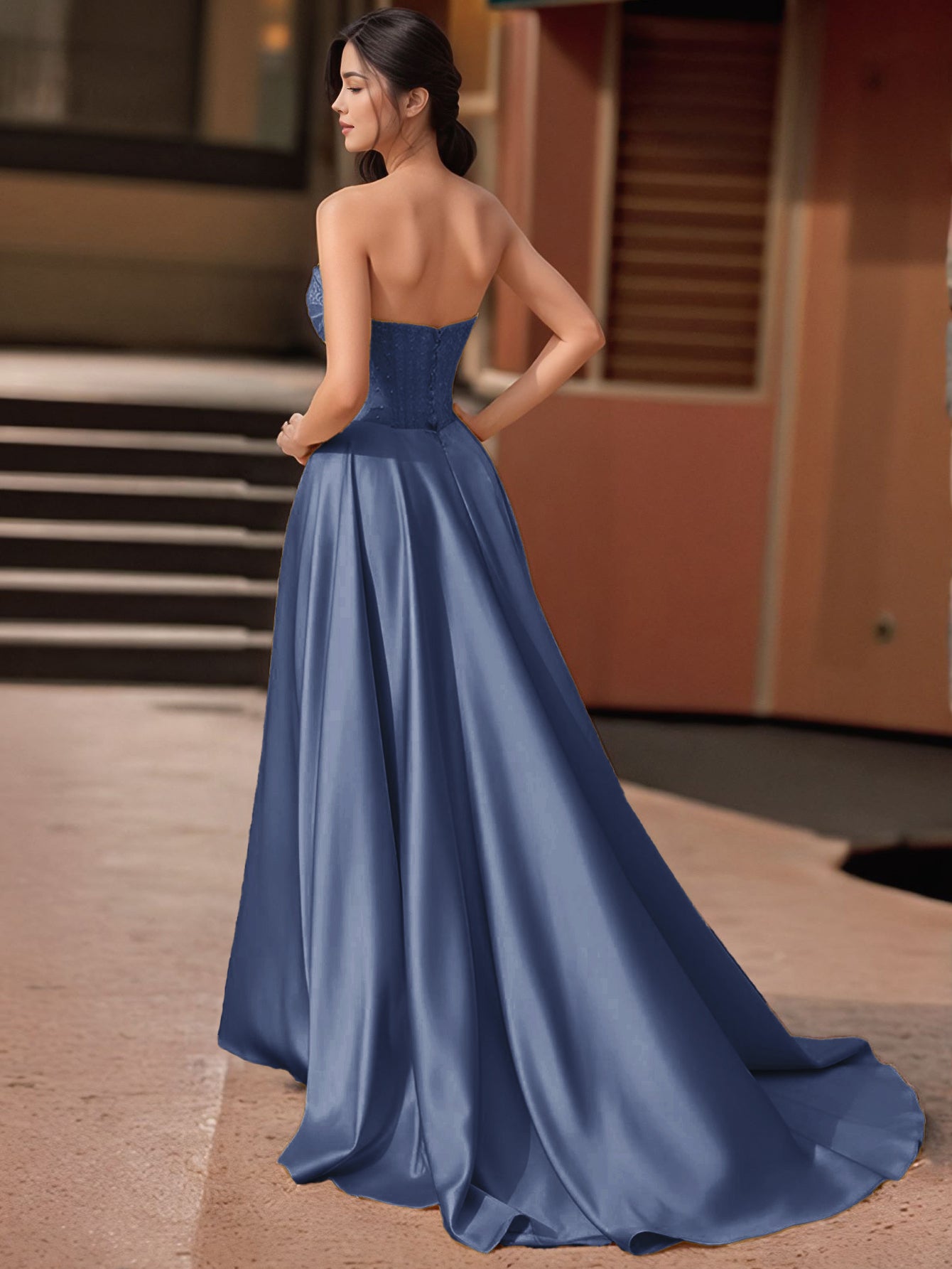 Strapless Beading Illusion Ruched Bodice Mermaid Prom Dress - Dusty Blue