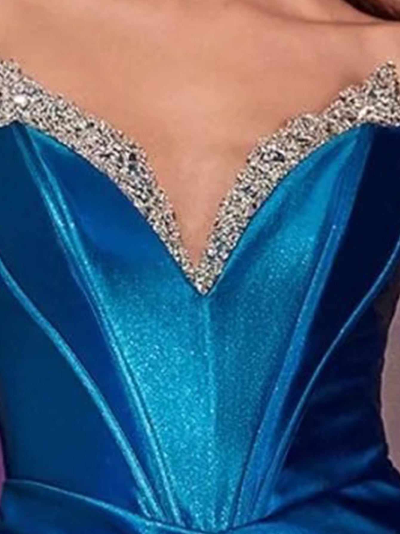 Strapless Ruched Beading Bodice Mermaid Prom Dress With Slit - Navy Blue