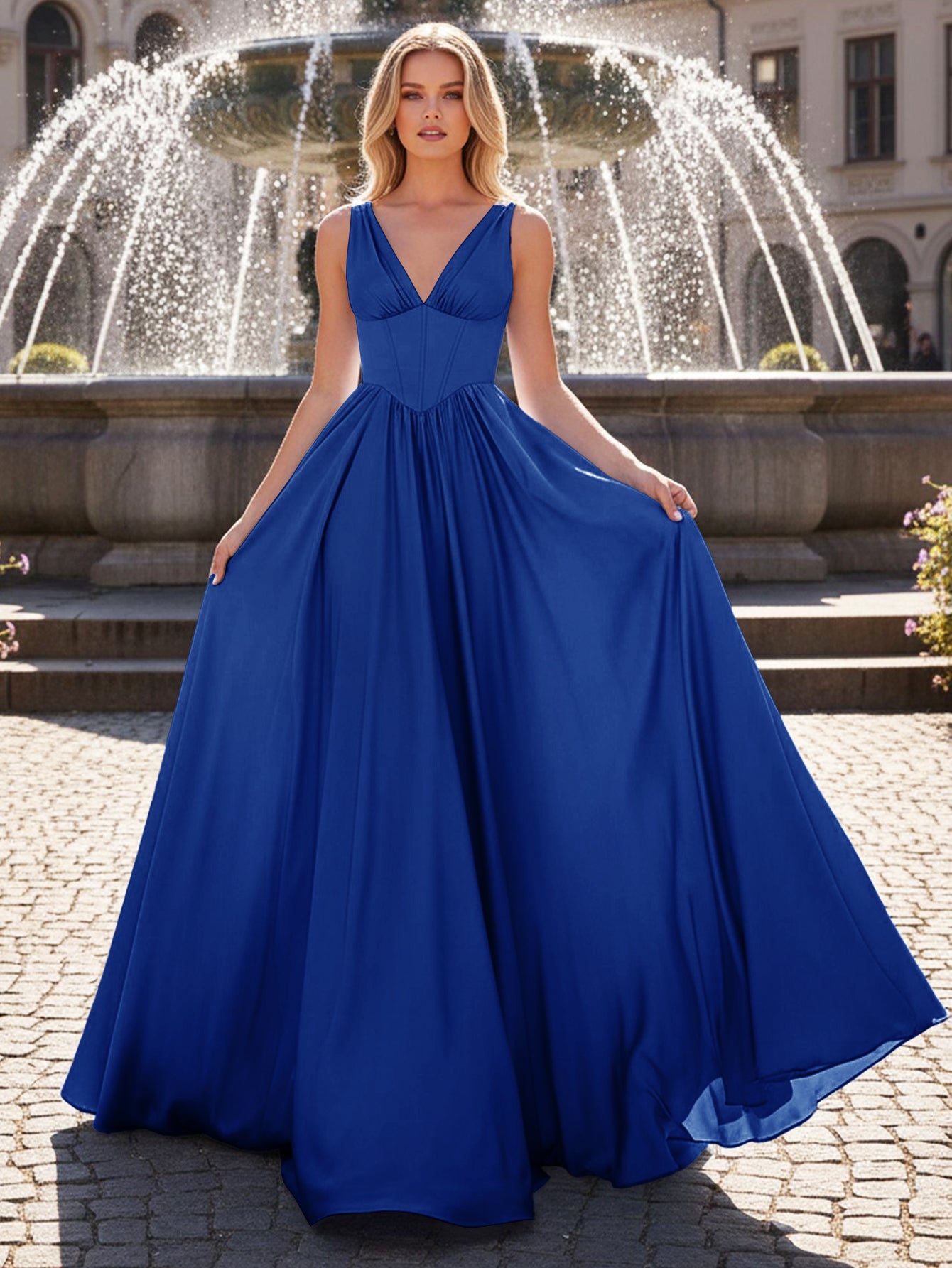 Tank Top Boned V Neck Ball Gown Prom Dress - Royal Blue