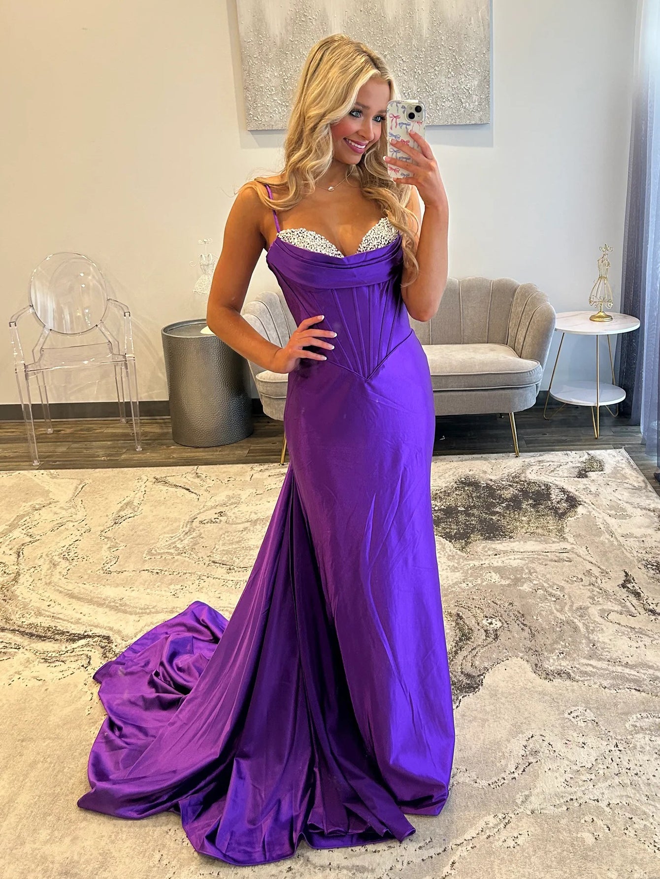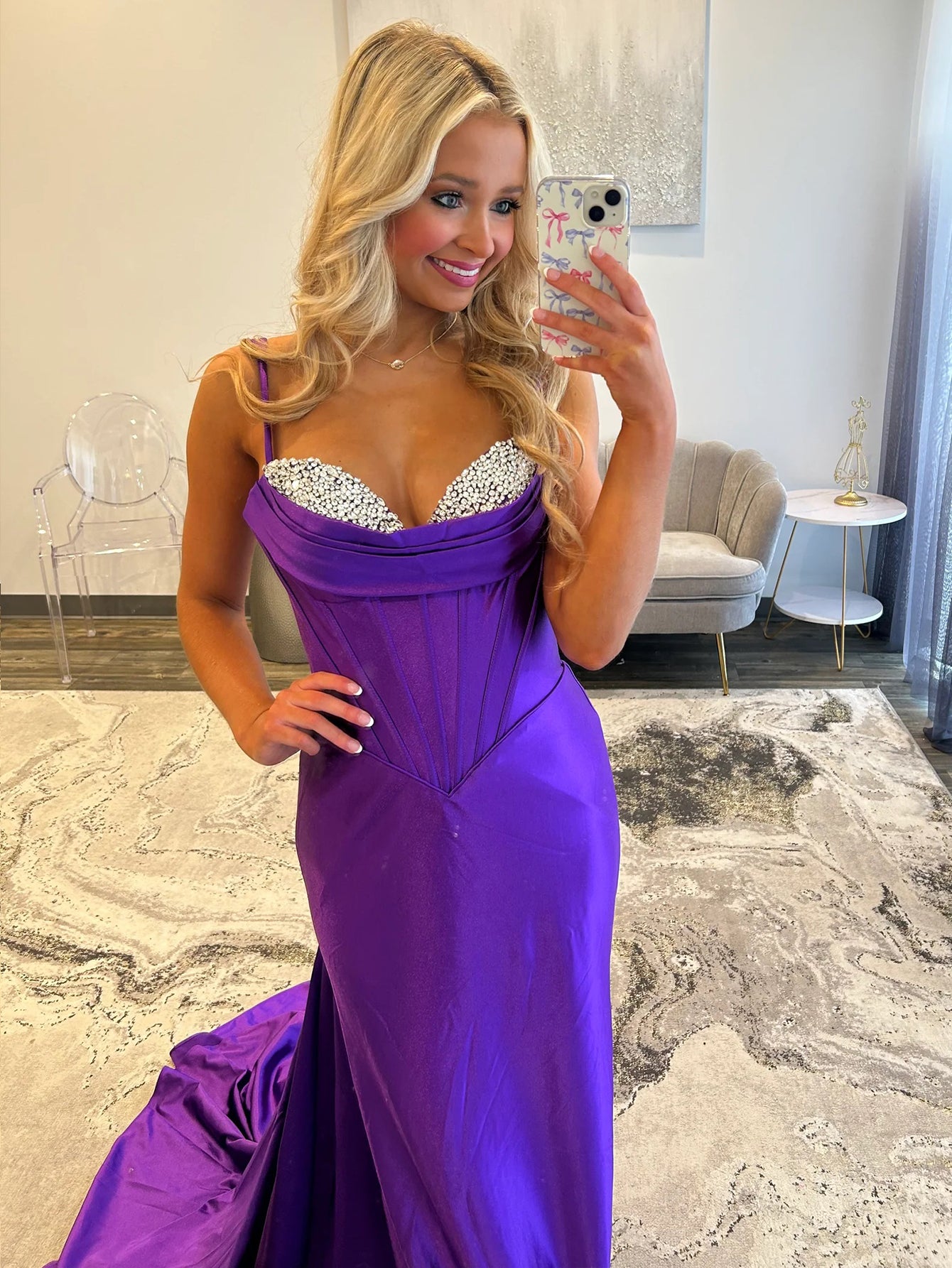 Crystal Boned Mermaid Prom Dress With Waist Drop - Purple