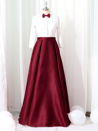 The elegant affordable bridesmaid dresses has a pleated hem. The a-line burgundy satin long dress is ideal for beach, outdoor wedding or garden wedding guest party.