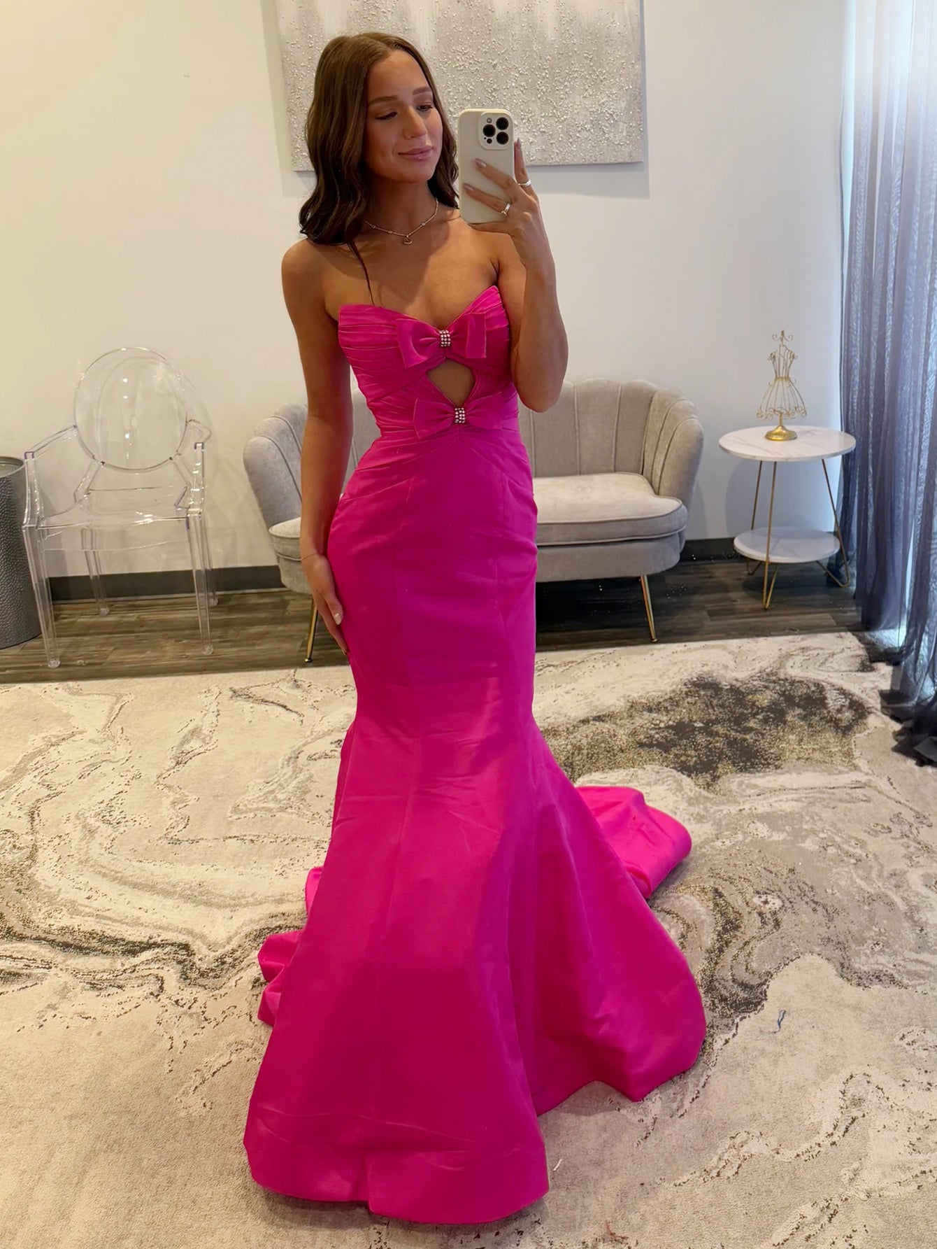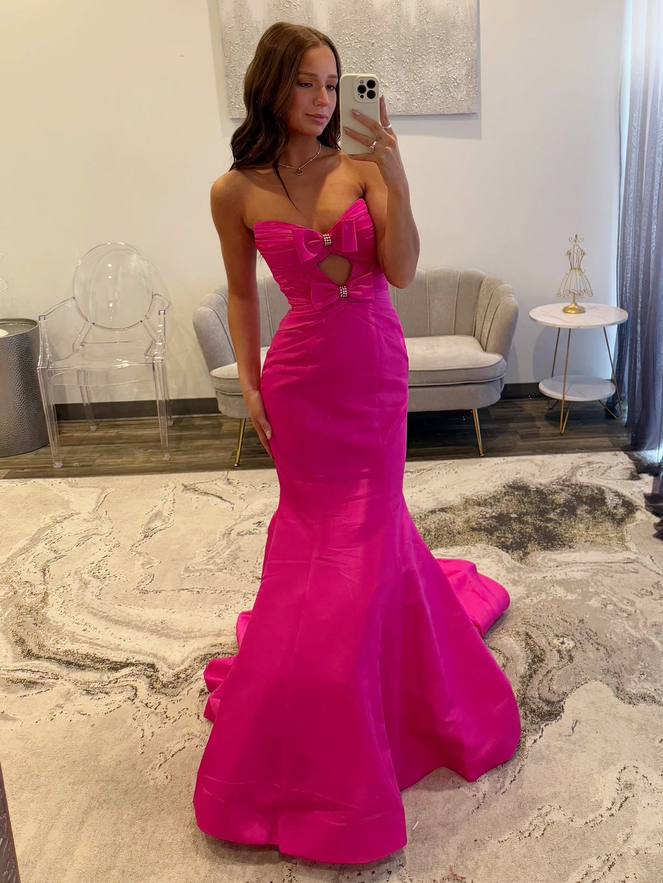 Strapless Cut Front Bows Mermaid Prom Dress - Hot Pink