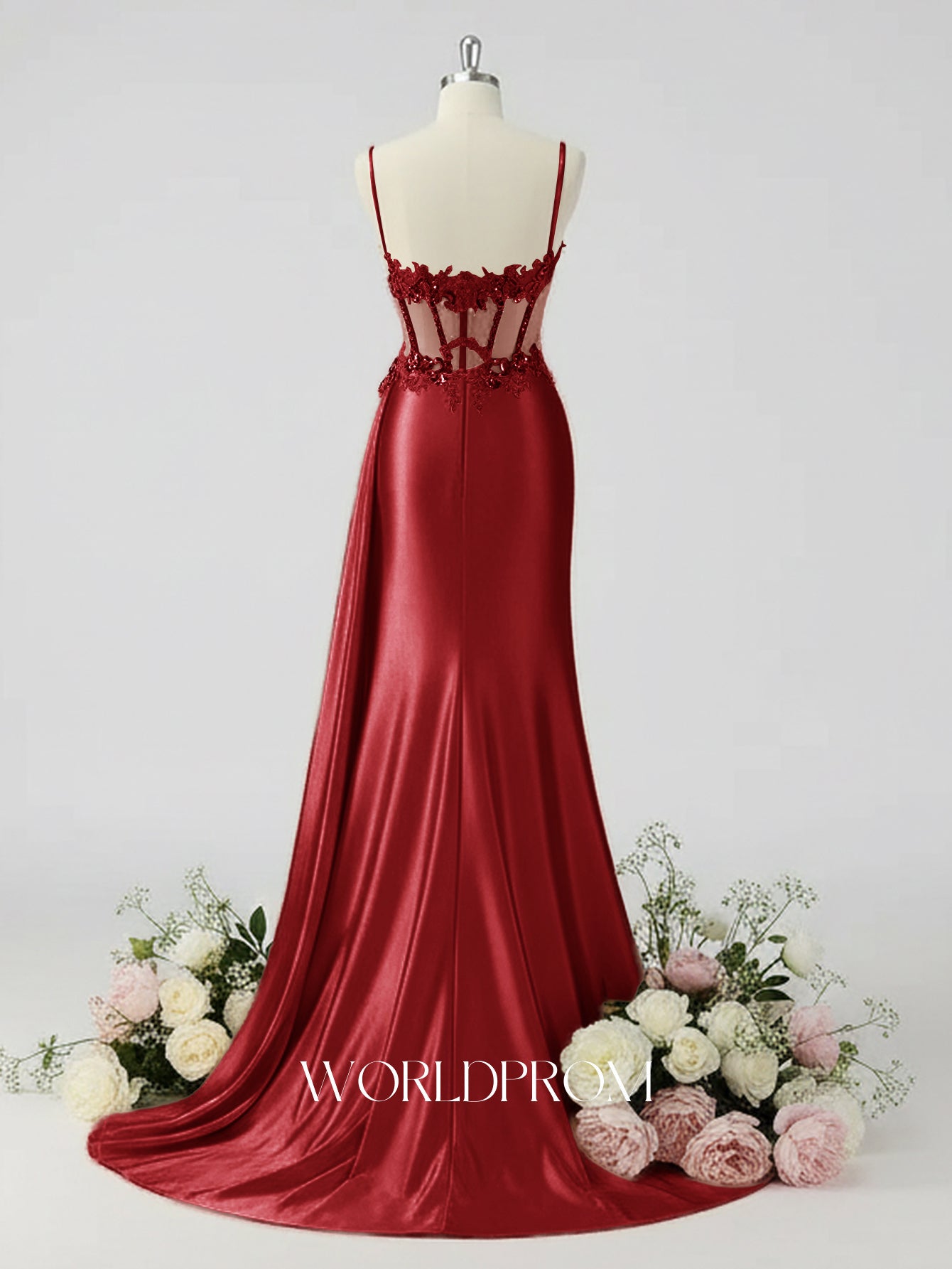 This satin prom gown features sparkly beading with sheer on the illusion bodice. The backless dress has a sweetheart neckline and split hem. Worldprom mermaid prom dresses are ideal for party, evening or festivals.