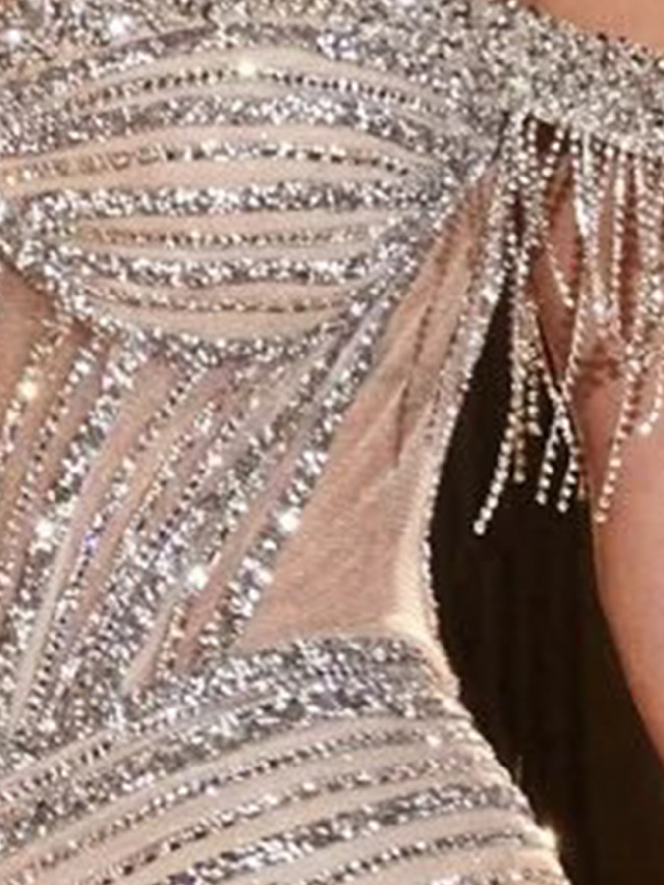 Details: Backless, Beading, Split, Illusion, Sheer, Fringe