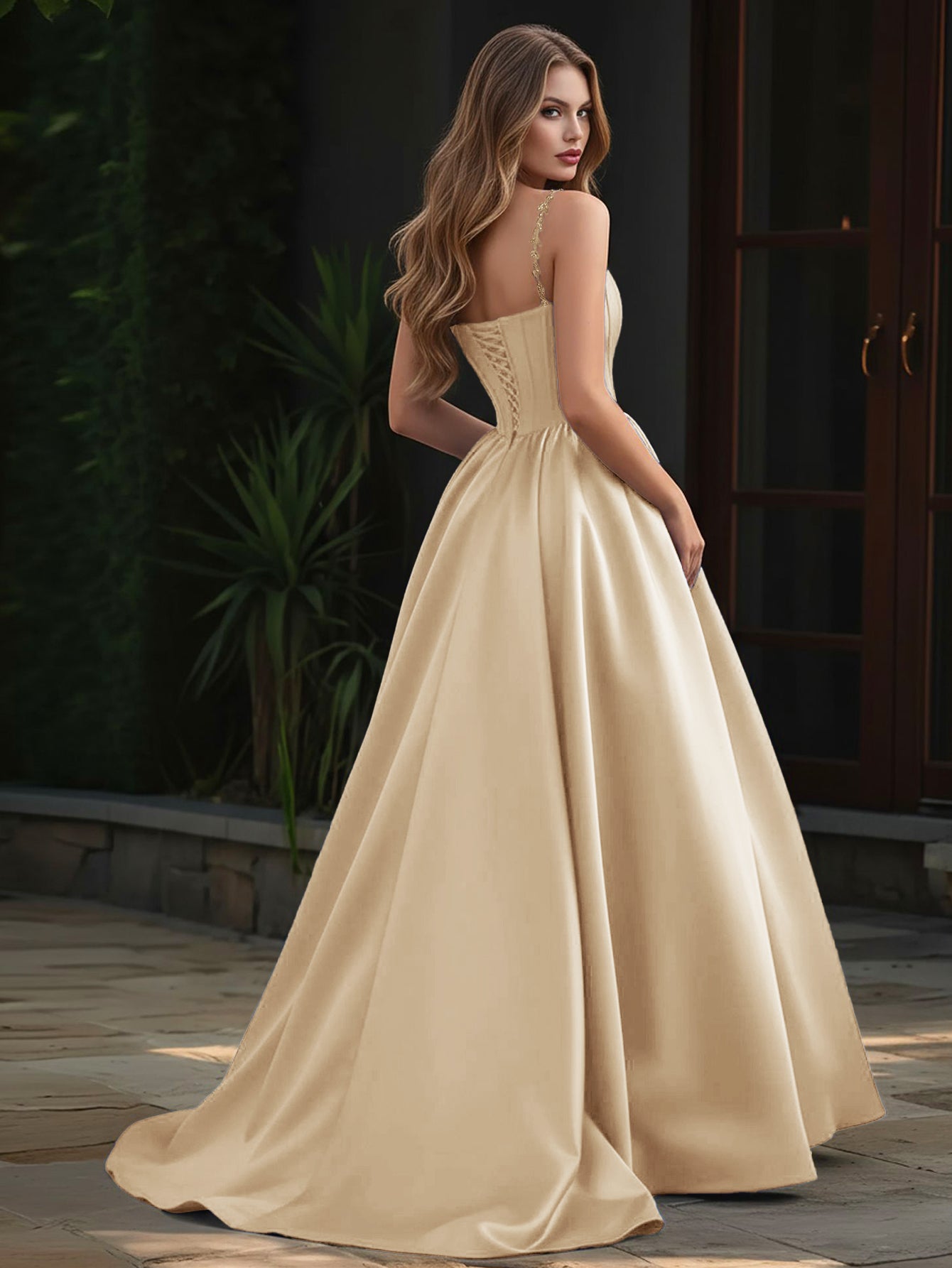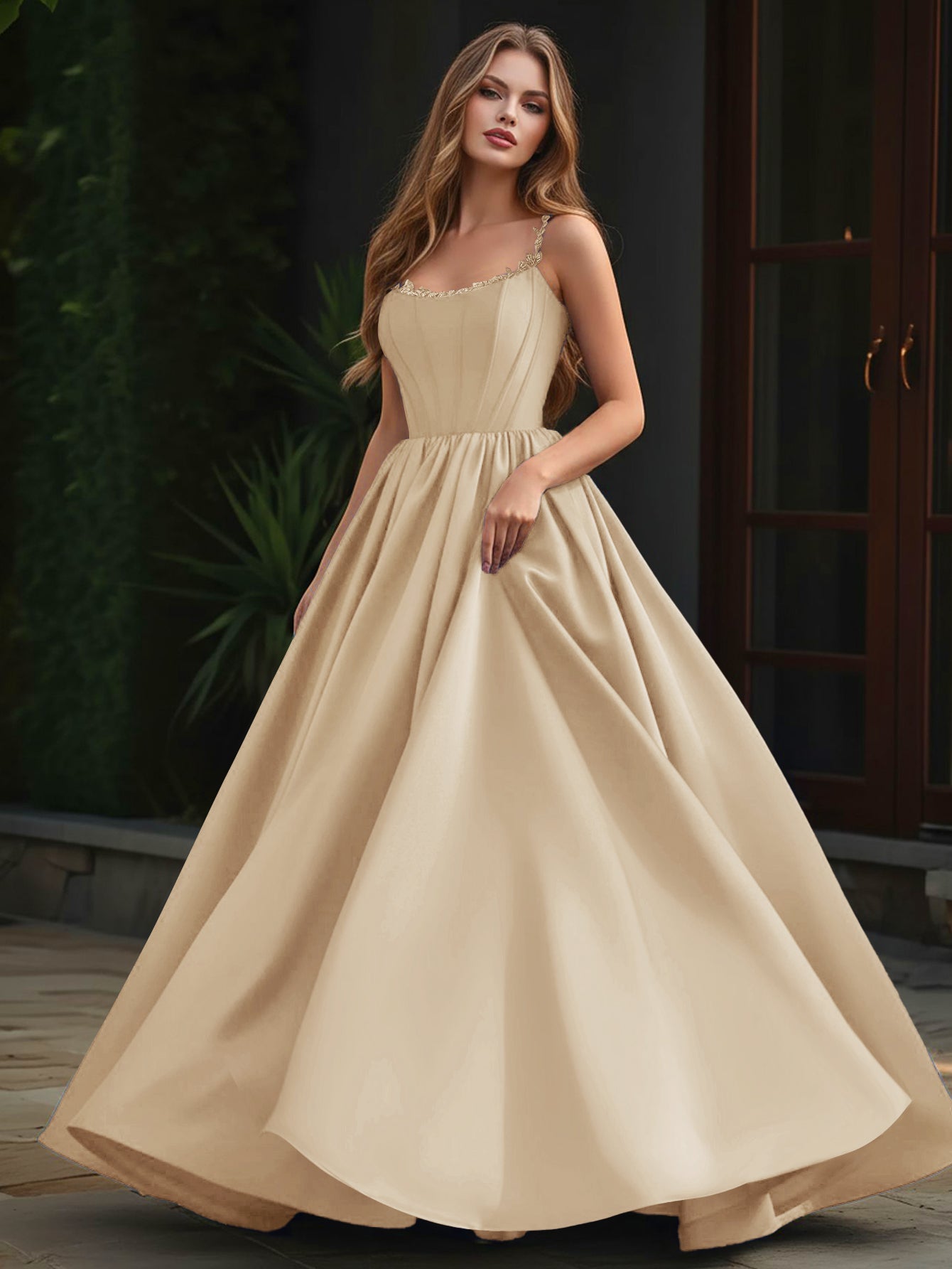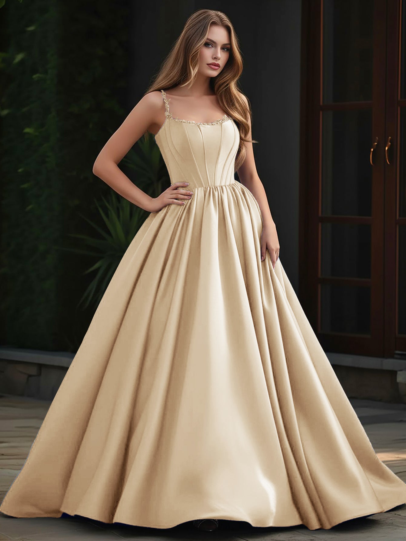 Spaghetti Straps Bodice Ball Gown Evening Dress - Champagne