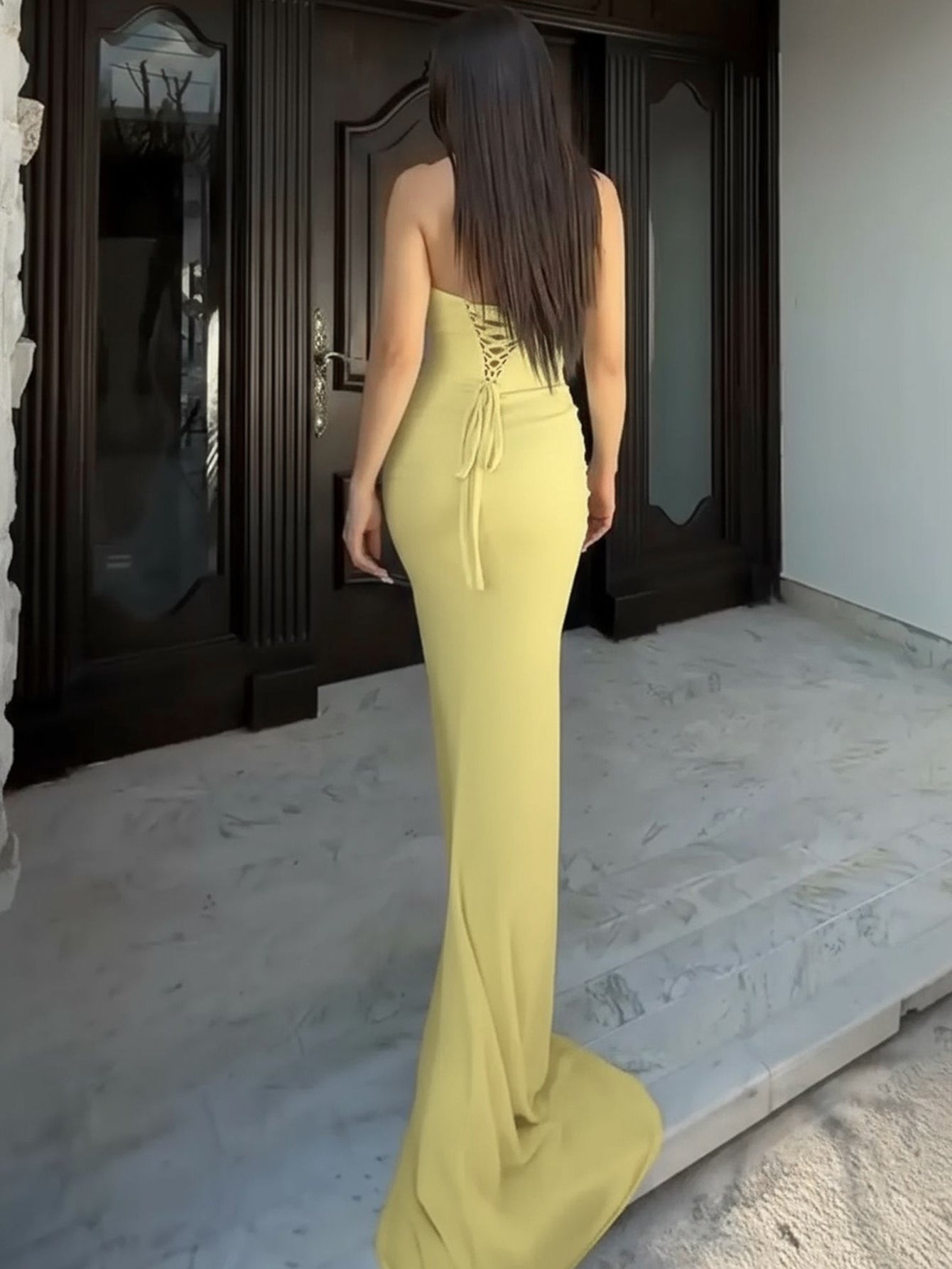 Strapless Ruched Bust Mermaid Long Prom Dress - Yellow