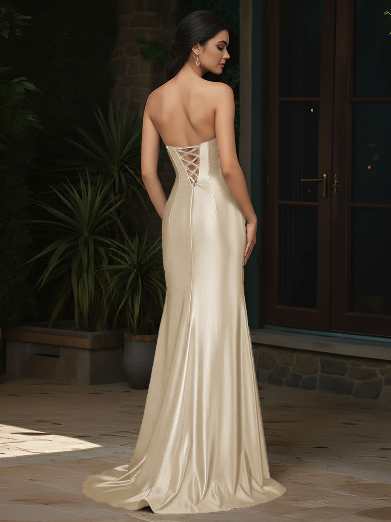 Strapless Satin Mermaid Long Prom Dress With Split - Champagne