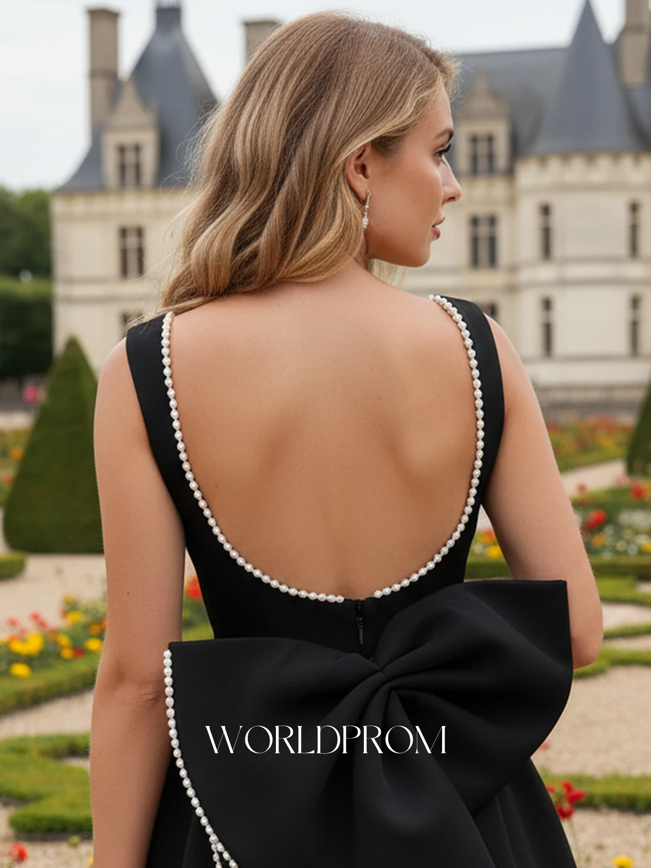 Details: Backless, Fitted Waist, Hand Beading, With Bow