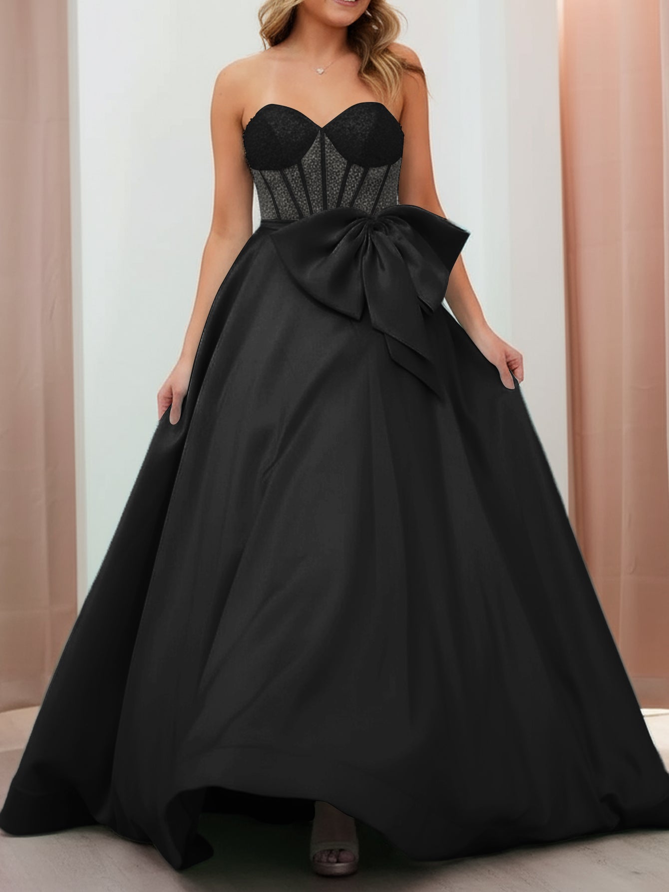 Strapless Big Bow Illusion Bodice Ball Gown Prom Dress - Black