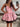 Shoulder Bows Floral Satin Boned Mini Ball Gown Prom Dress - Pink