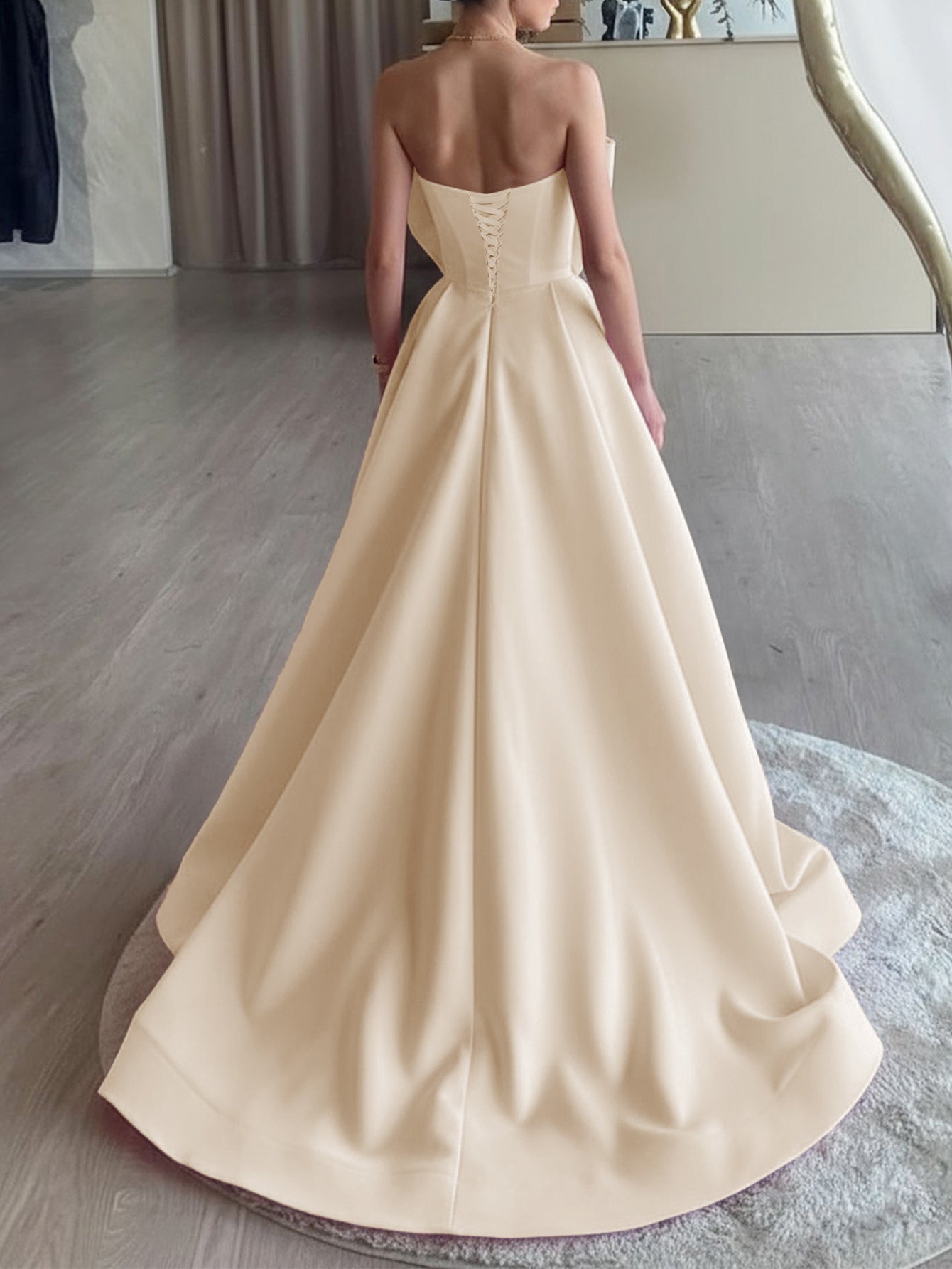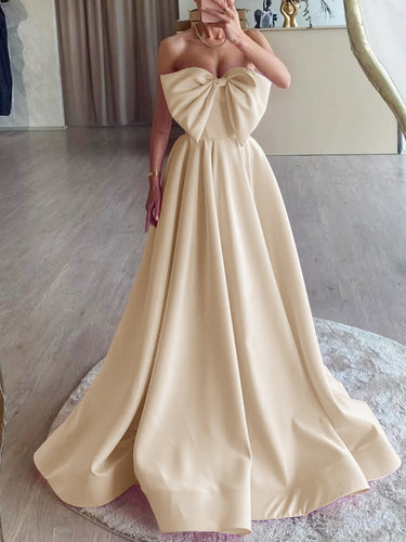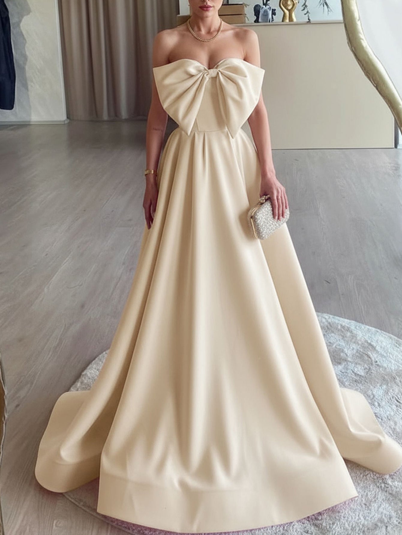 Big Bow Strapless Ball Gown Prom Dress - Champagne
