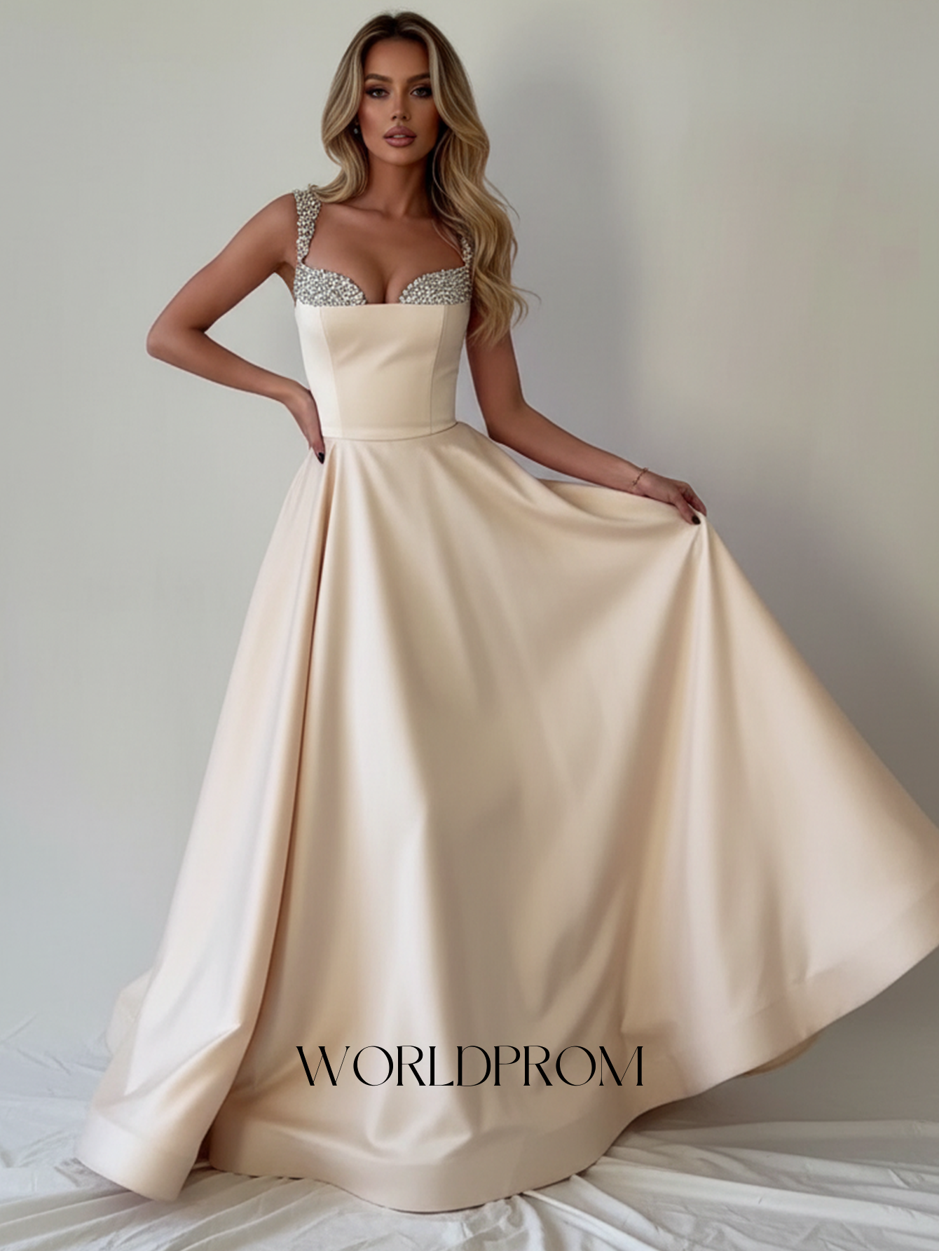 Luxury Crystal Ball Gown Long Prom Dress - Champagne