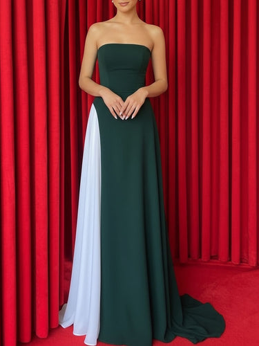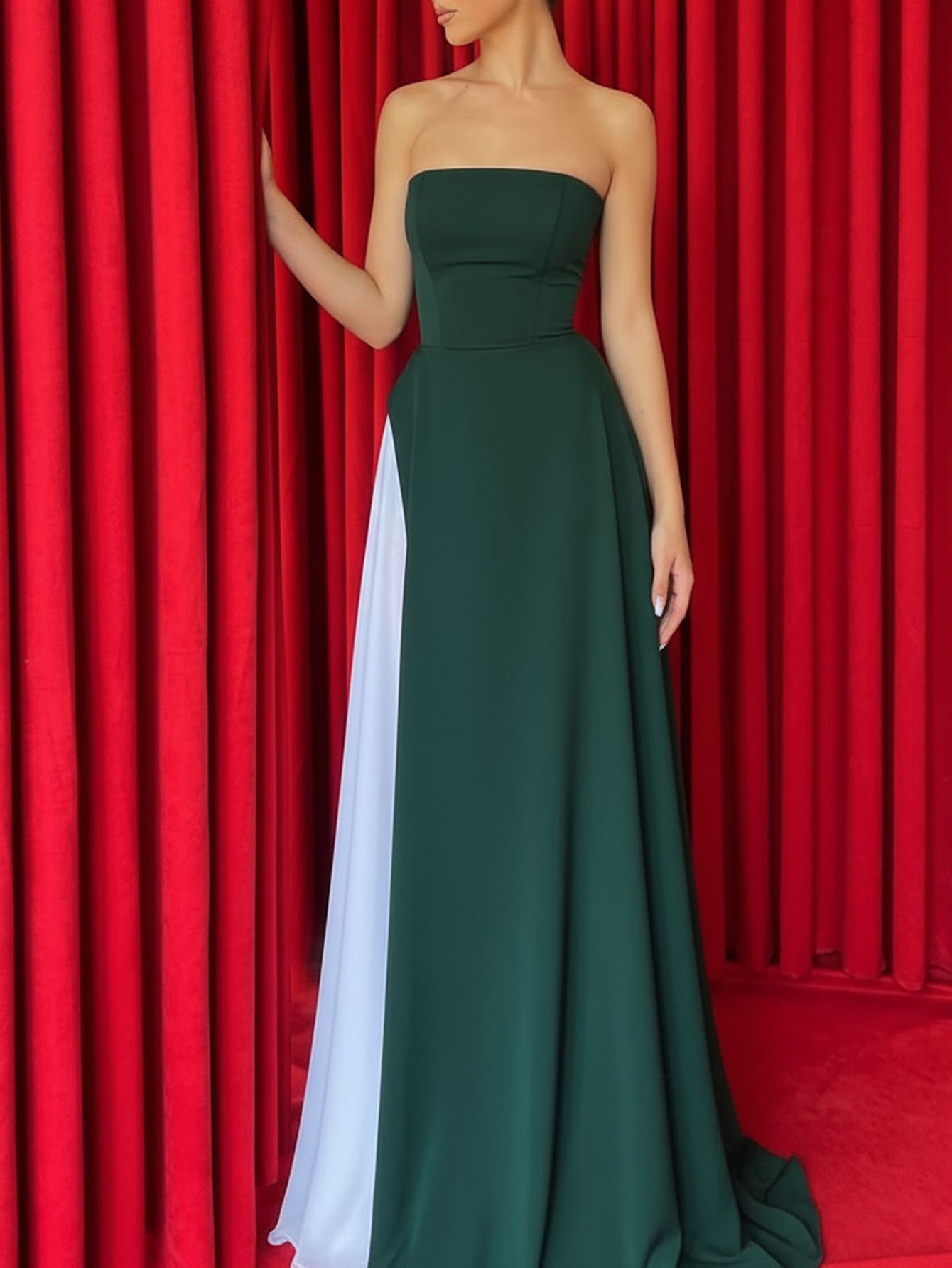 Two Pieces Strapless A-Line Long Prom Dress - Dark Green