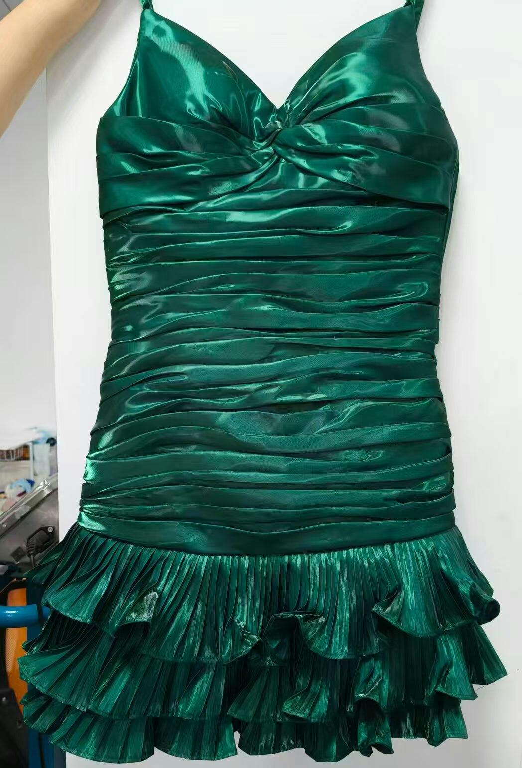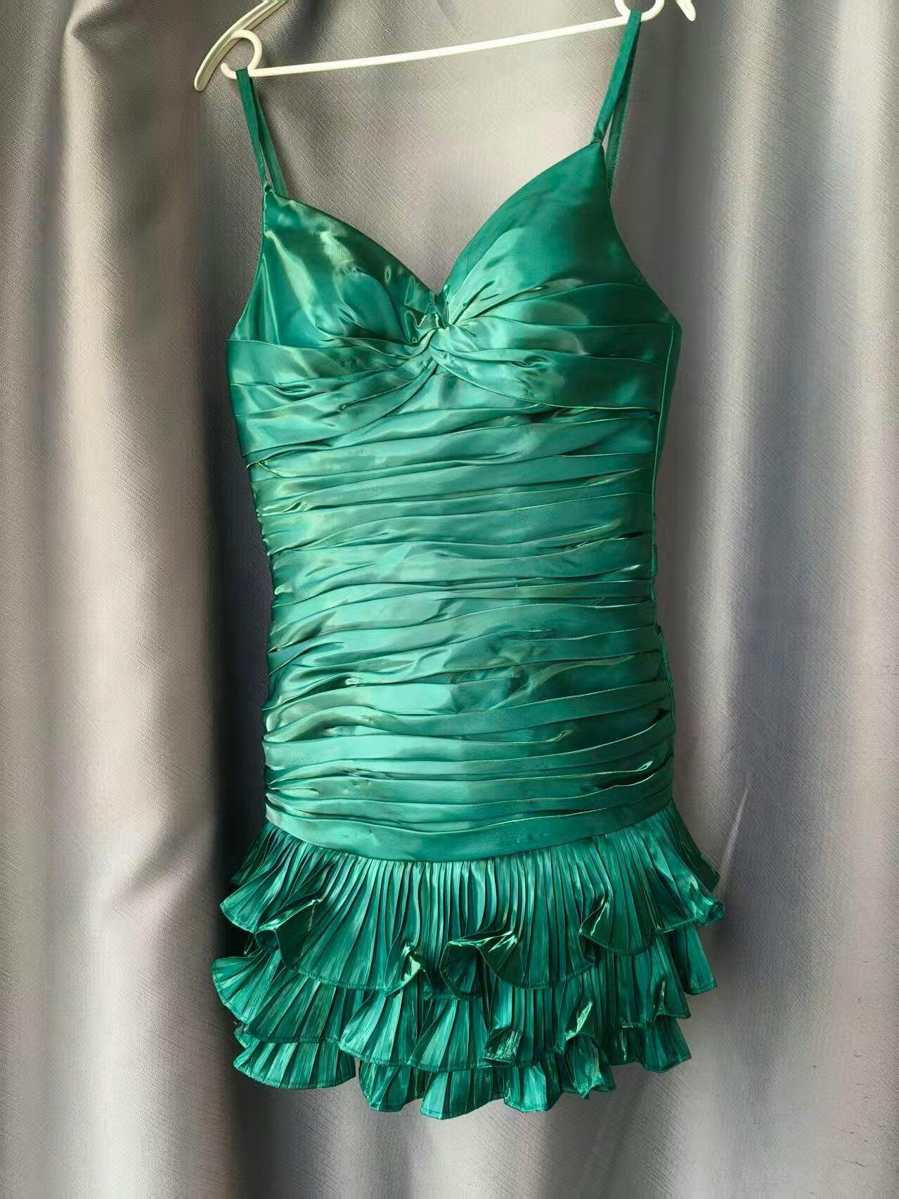 Sparkly Pleated Cross Satin Mini Prom Dress - Emerald Green