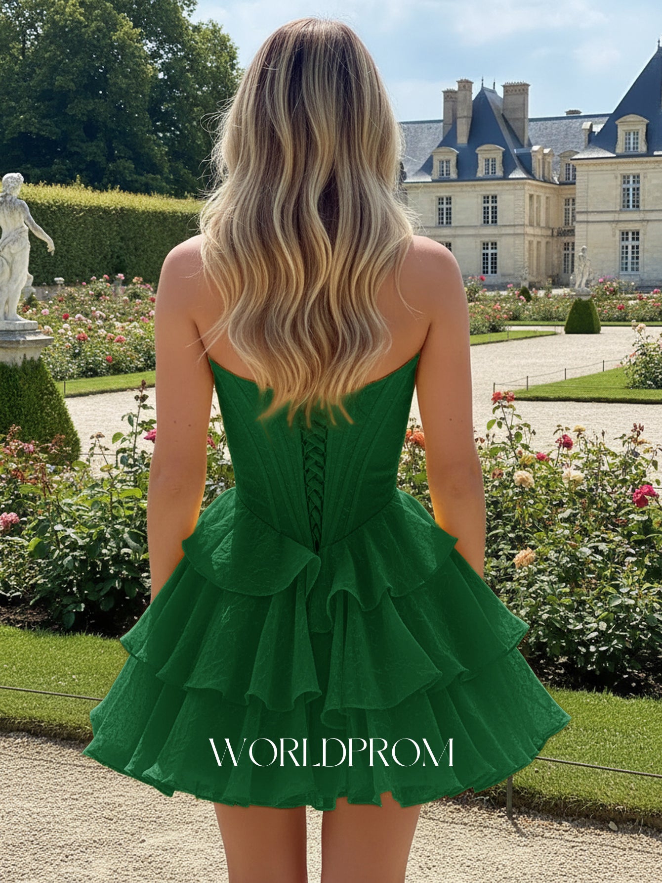 Strapless Boned Ruffle Chiffon Mini Ball Gown Prom Dress - Emerald Green