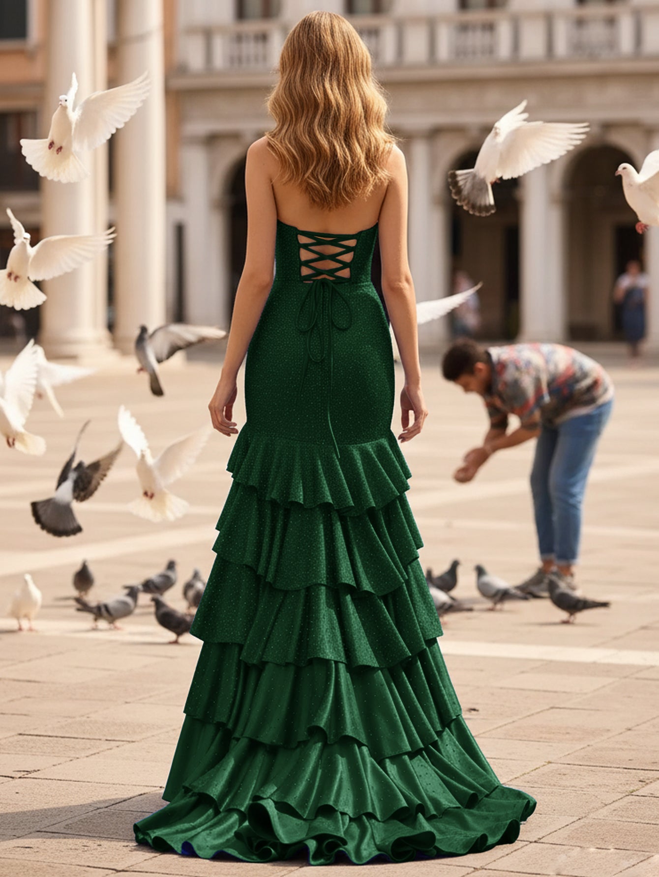 Details: Backless, Hot Fix, Crystal, Lace Up, Ruffled, Split