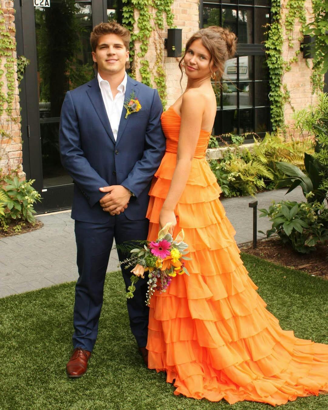 This chiffon prom gown features fitted waist on the bodice. The strapless dress has a sweetheart neck and ruffled tiered hem. This maxi formal dress ball gown is ideal for party, evening or festivals.