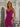 Pleated Waist Drop V Neck Long Prom Dress - Fuchsia