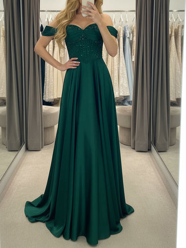 This satin prom gown features crystal beading sheer with detachable sleeves on the illusion bodice. The evening dress has a sweetheart neckline and pleated hem. Worldprom mermaid prom dresses are ideal for party, evening or festivals.
