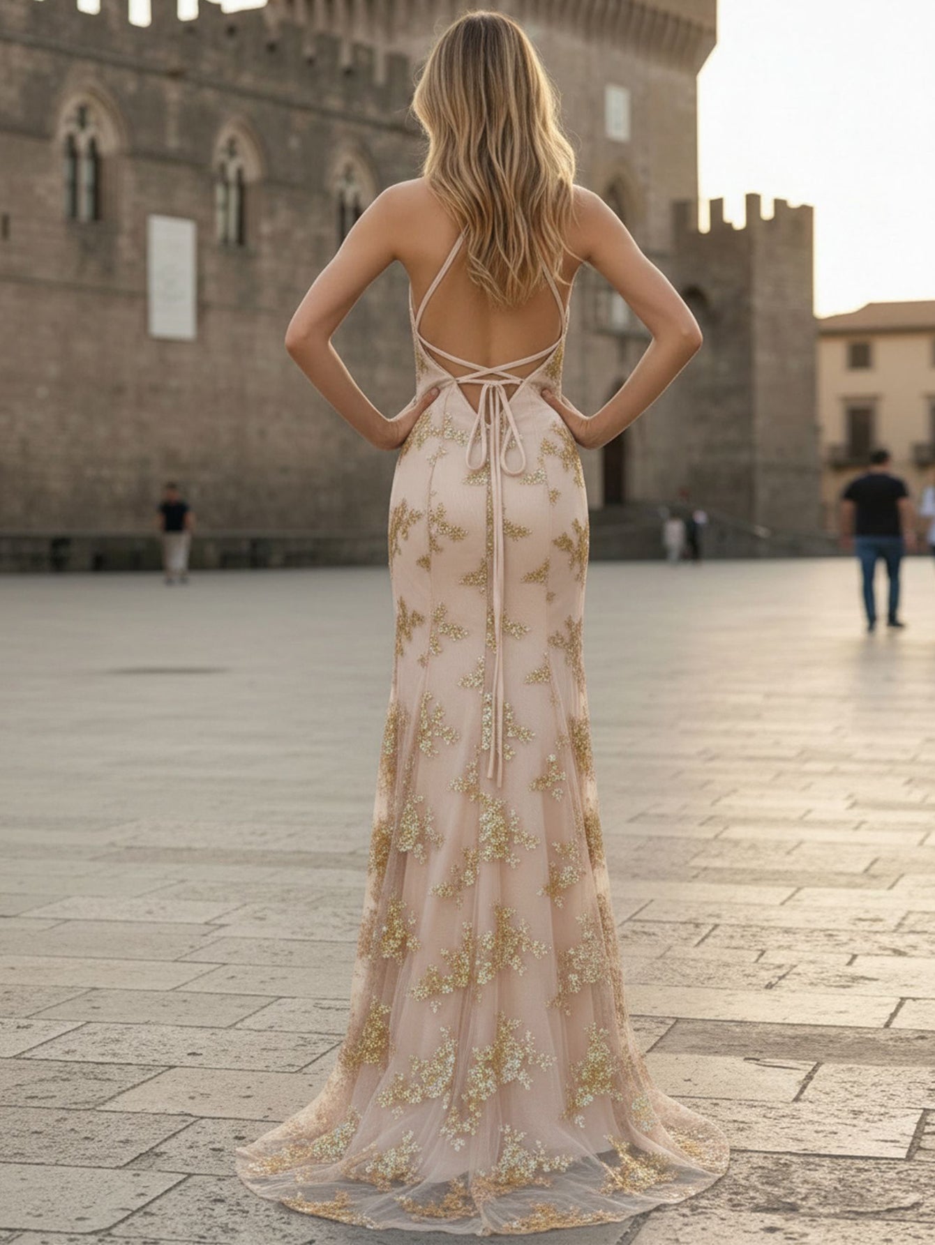Details: Sparking, Beading, Split, Backless, Lace Up