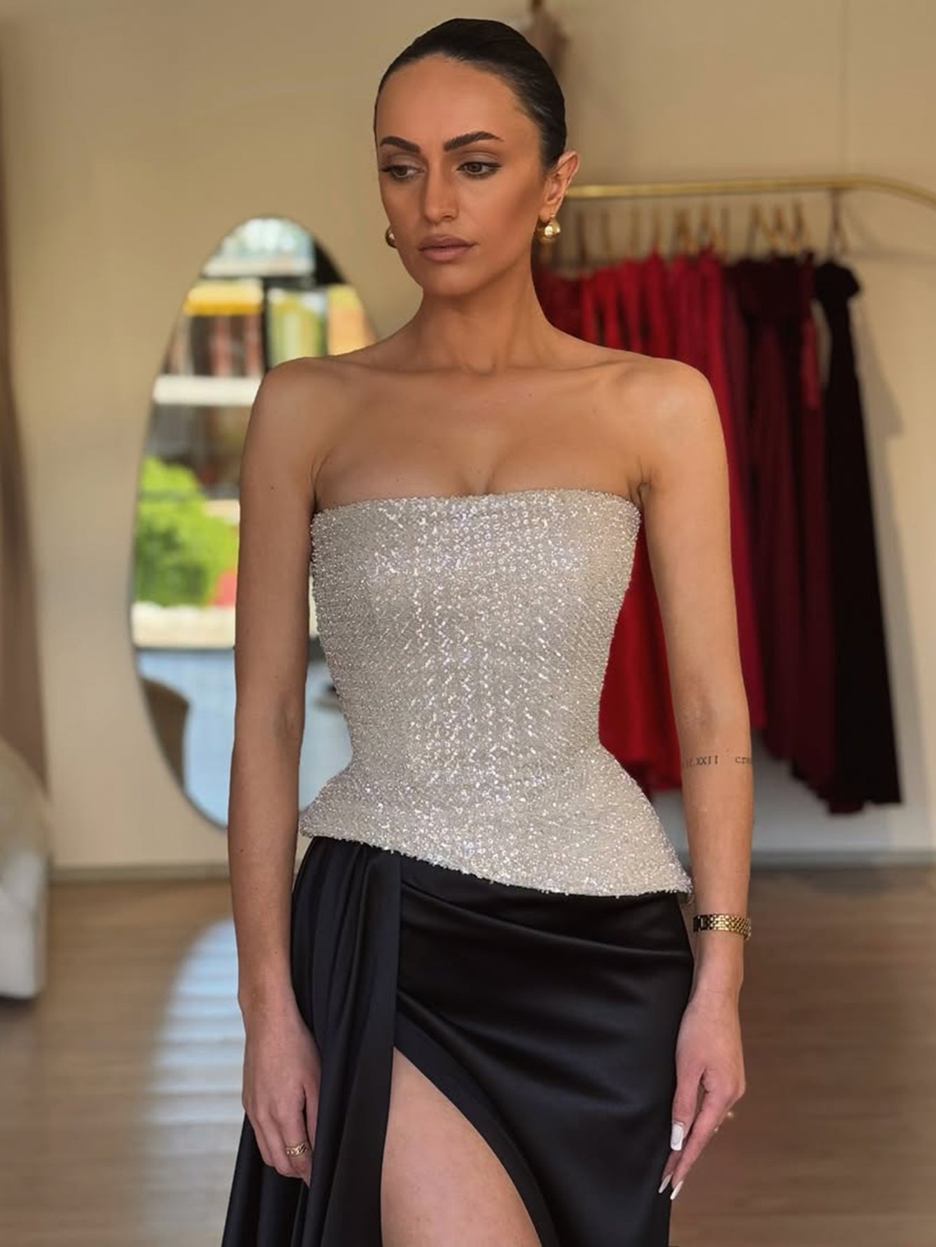 Sparkly Two Pieces Strapless Bodice Mermaid Prom Dress With Drop - Black