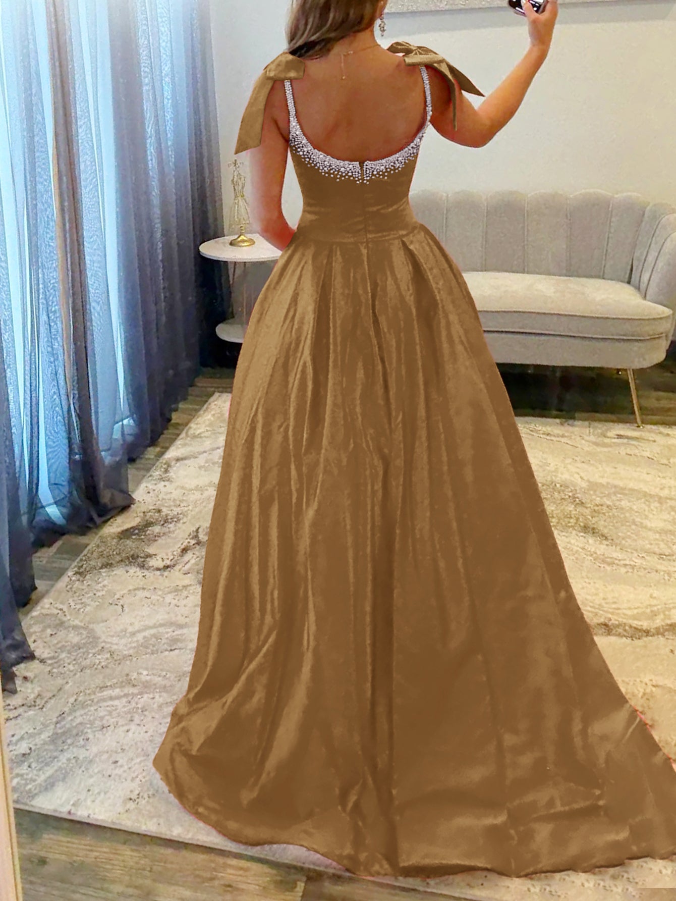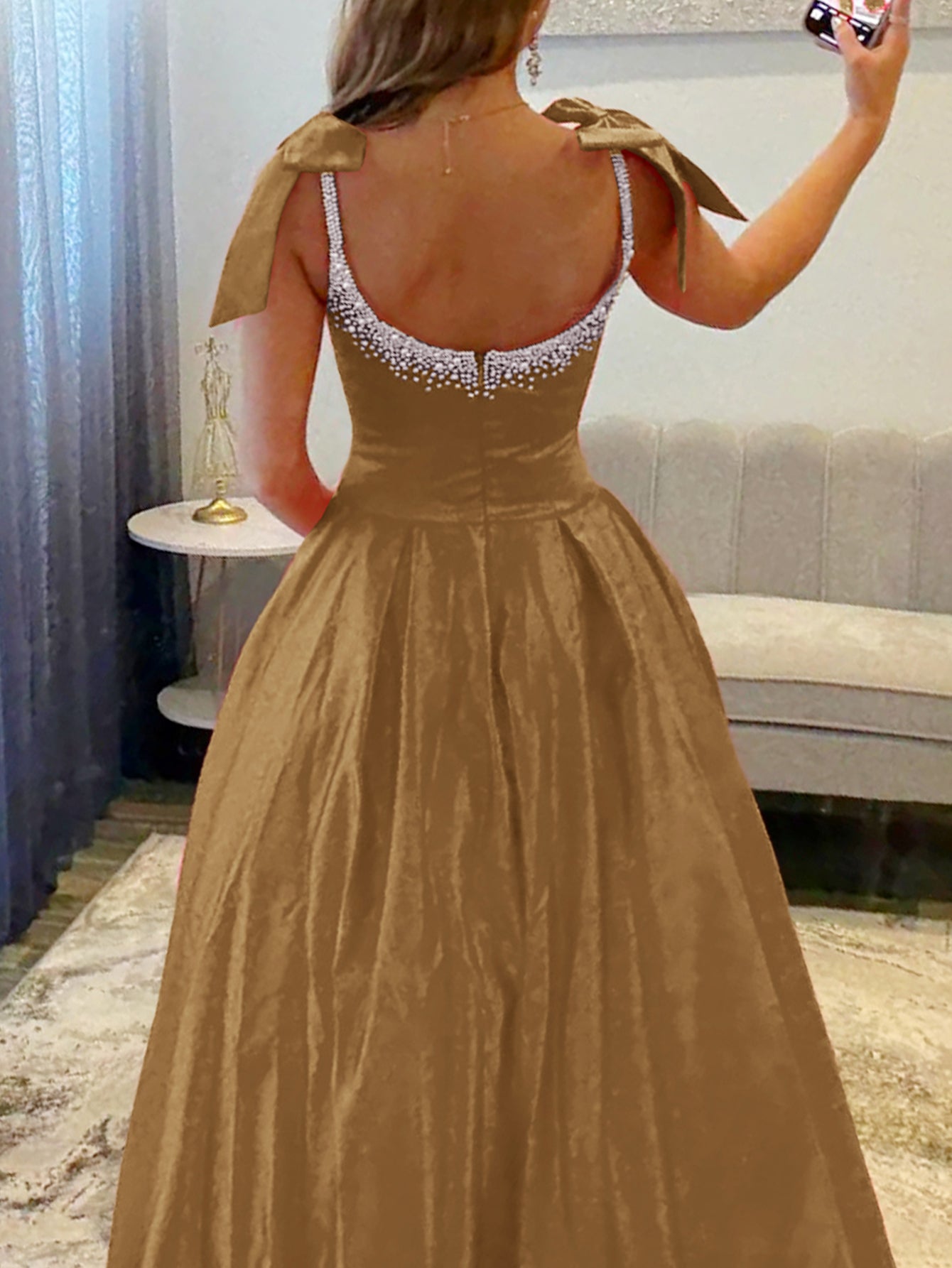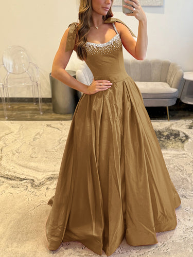Hand Beading Bodice Ball Gown Prom Dress With Bows - Gold