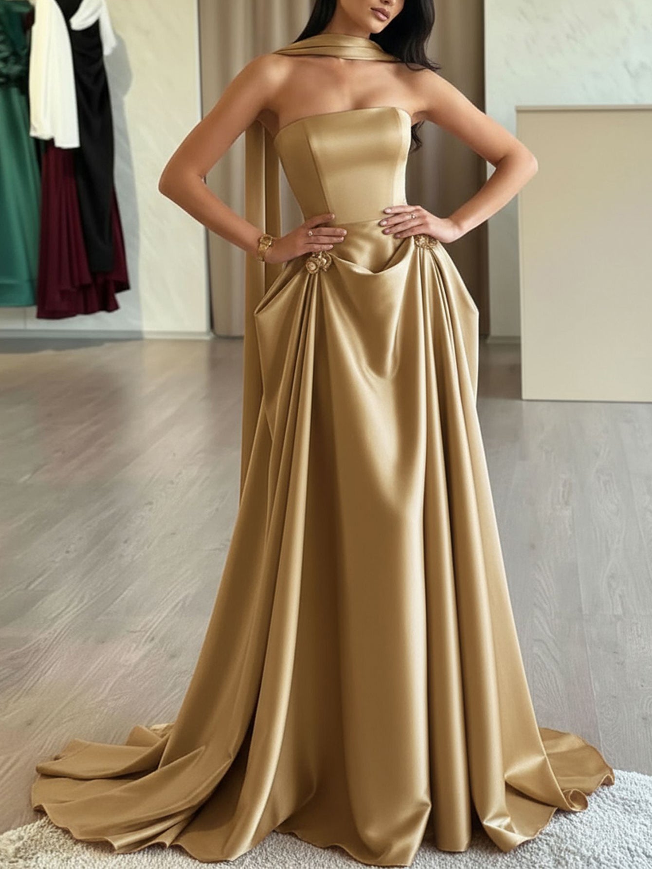 Strapless Ball Gown Prom Dress With Shawl - Gold