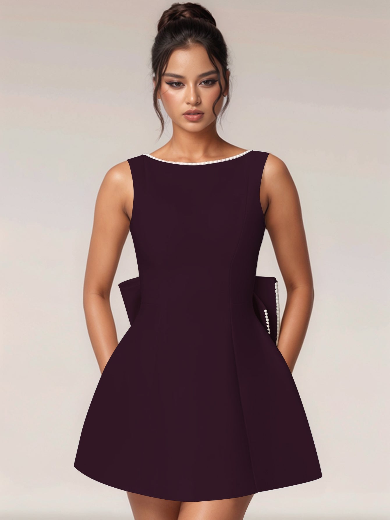 Hand Beading Backless Bow Ball Gown Prom Bridal Mini Dress - Grape