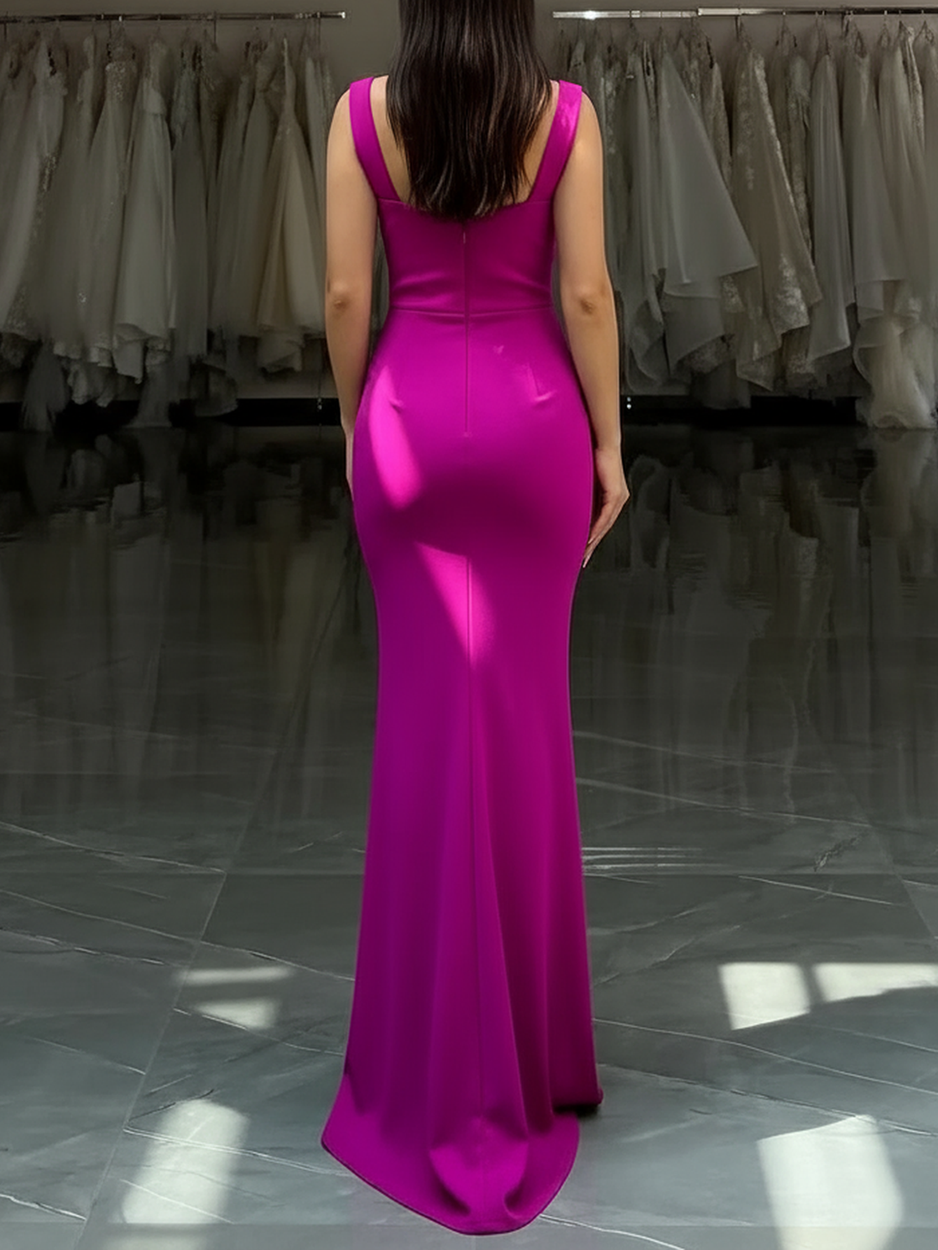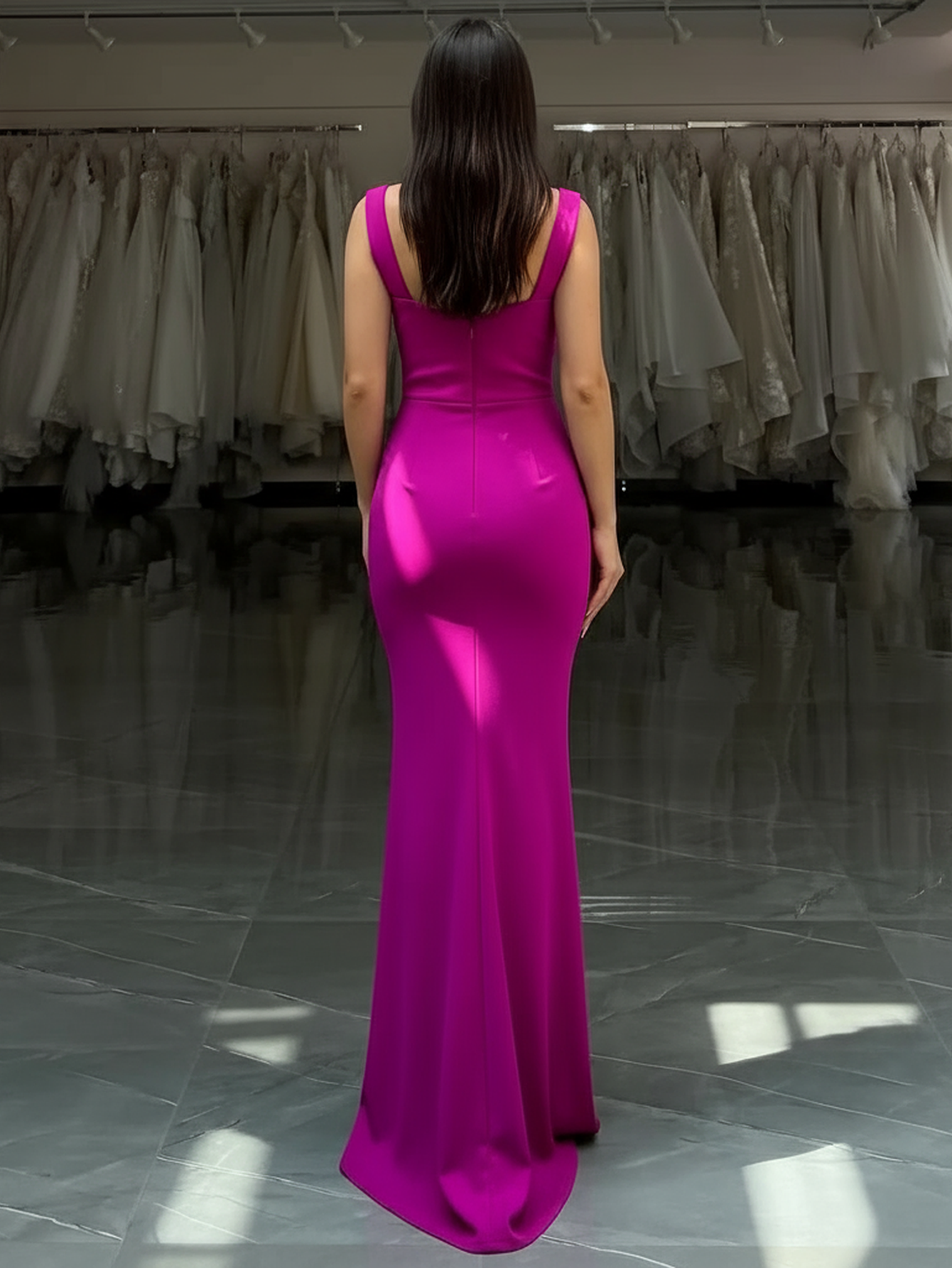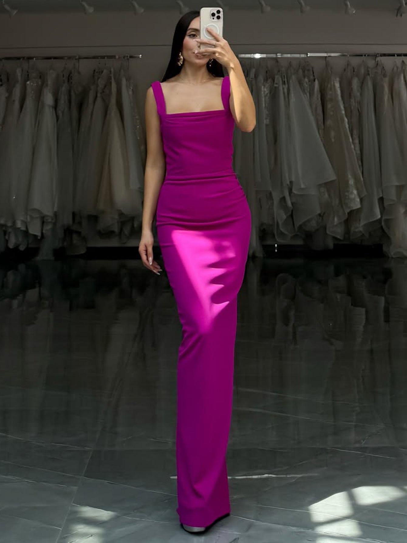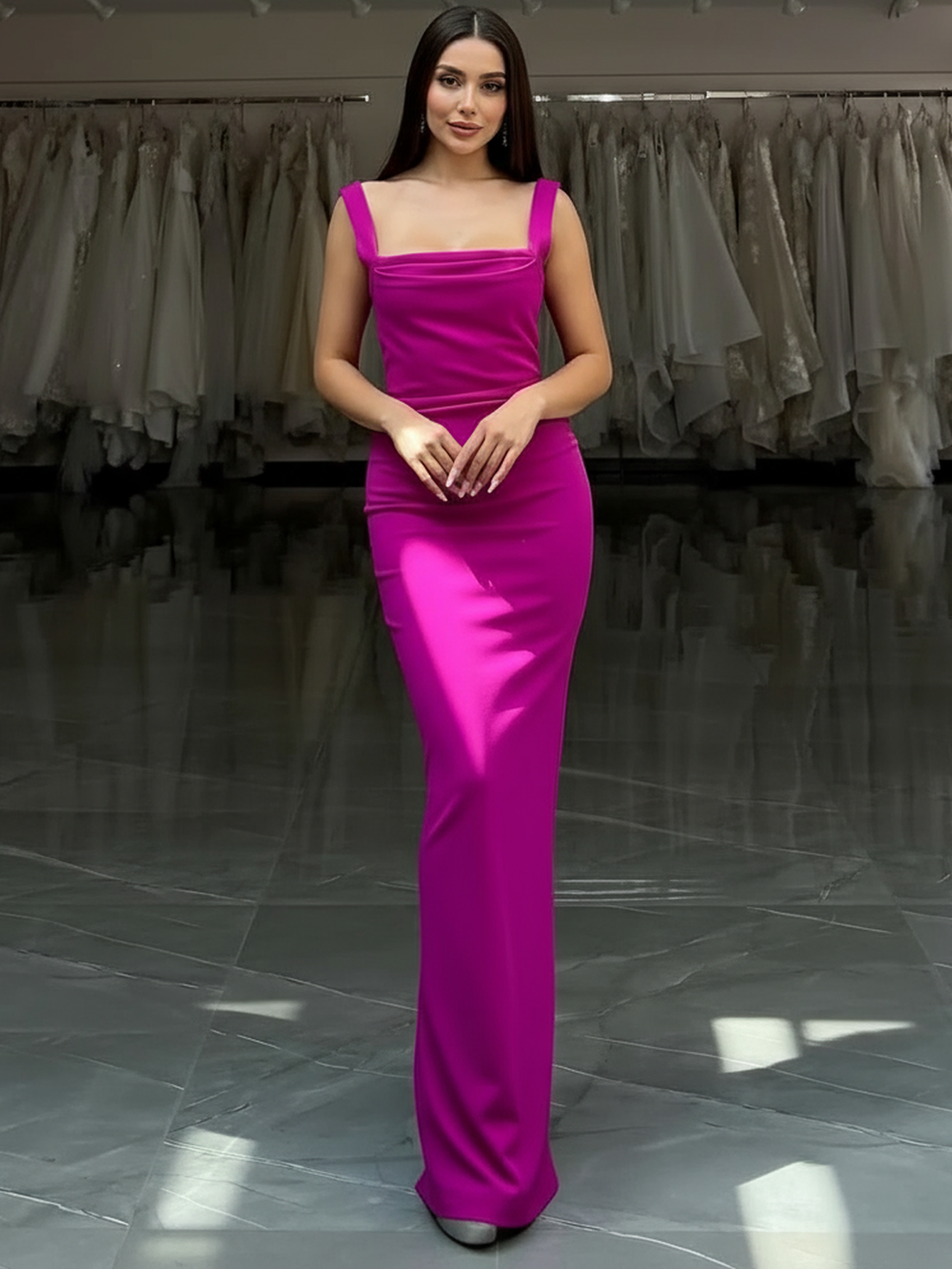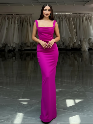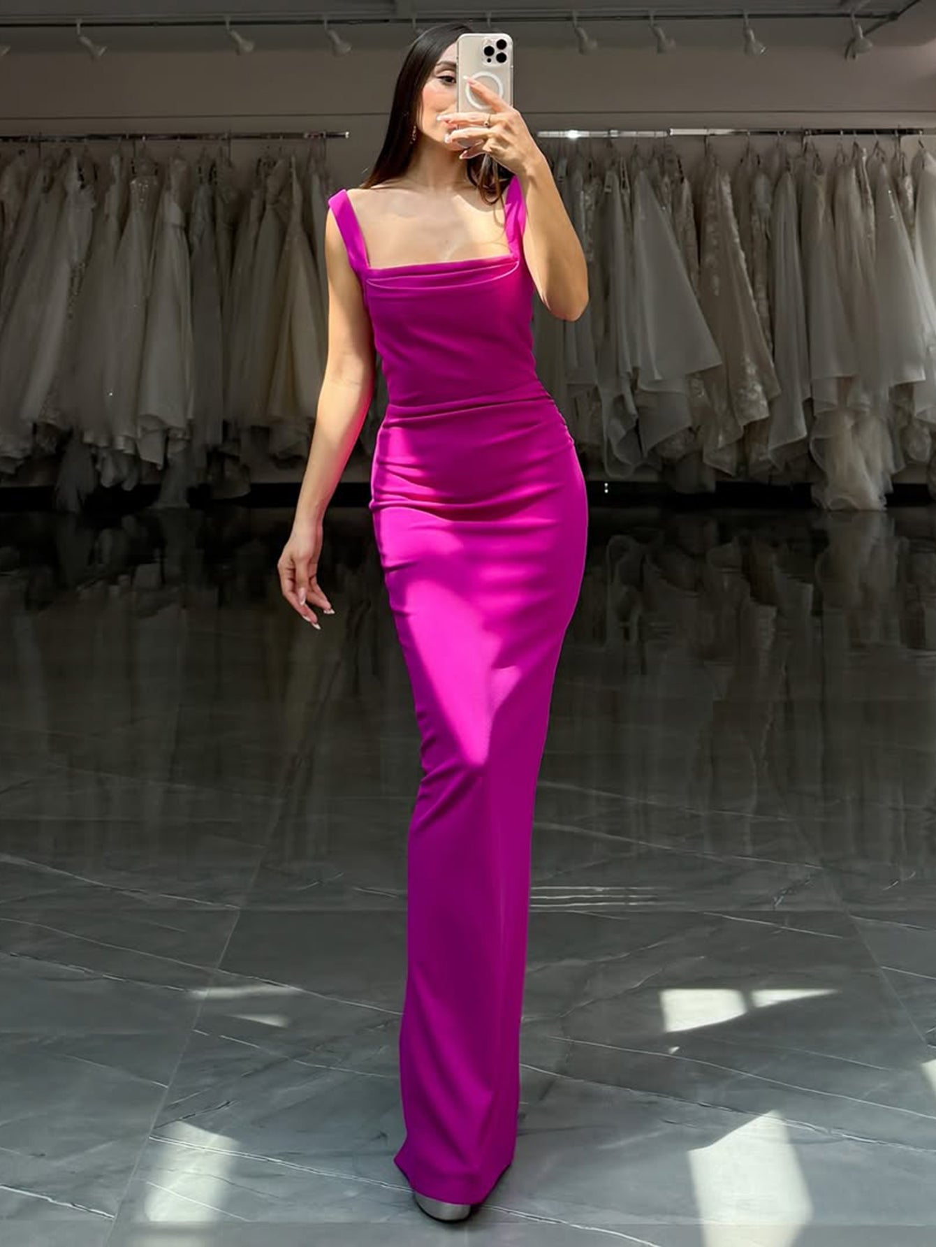 This satin prom gown features ruched bust on the bodice. The tank dress has a square neckline and sheath hem. Worldprom mermaid prom dresses are ideal for party, evening or festivals.