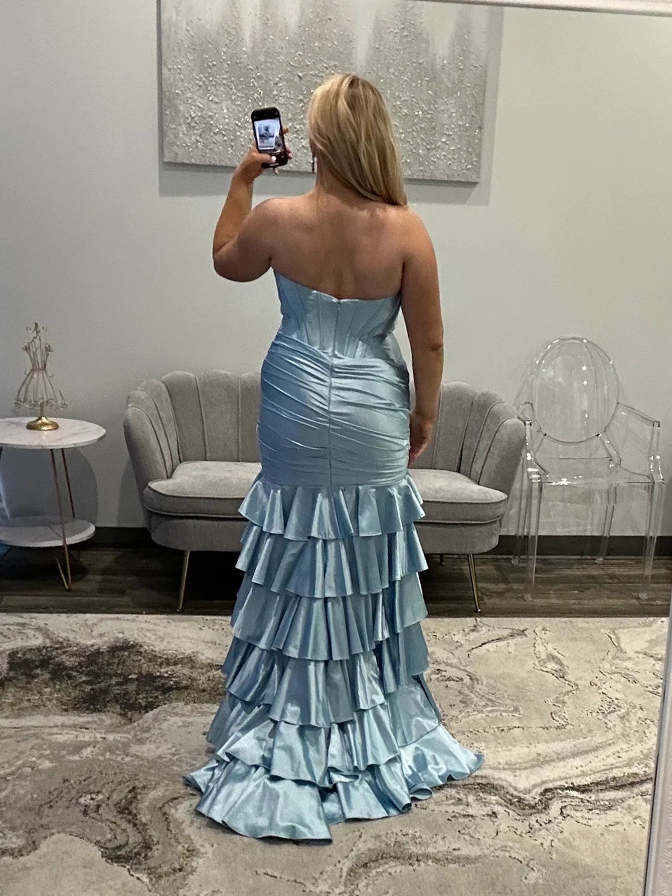 Boned Bodice Strapless Mermaid Prom Dress With Ruffle - Sky Blue