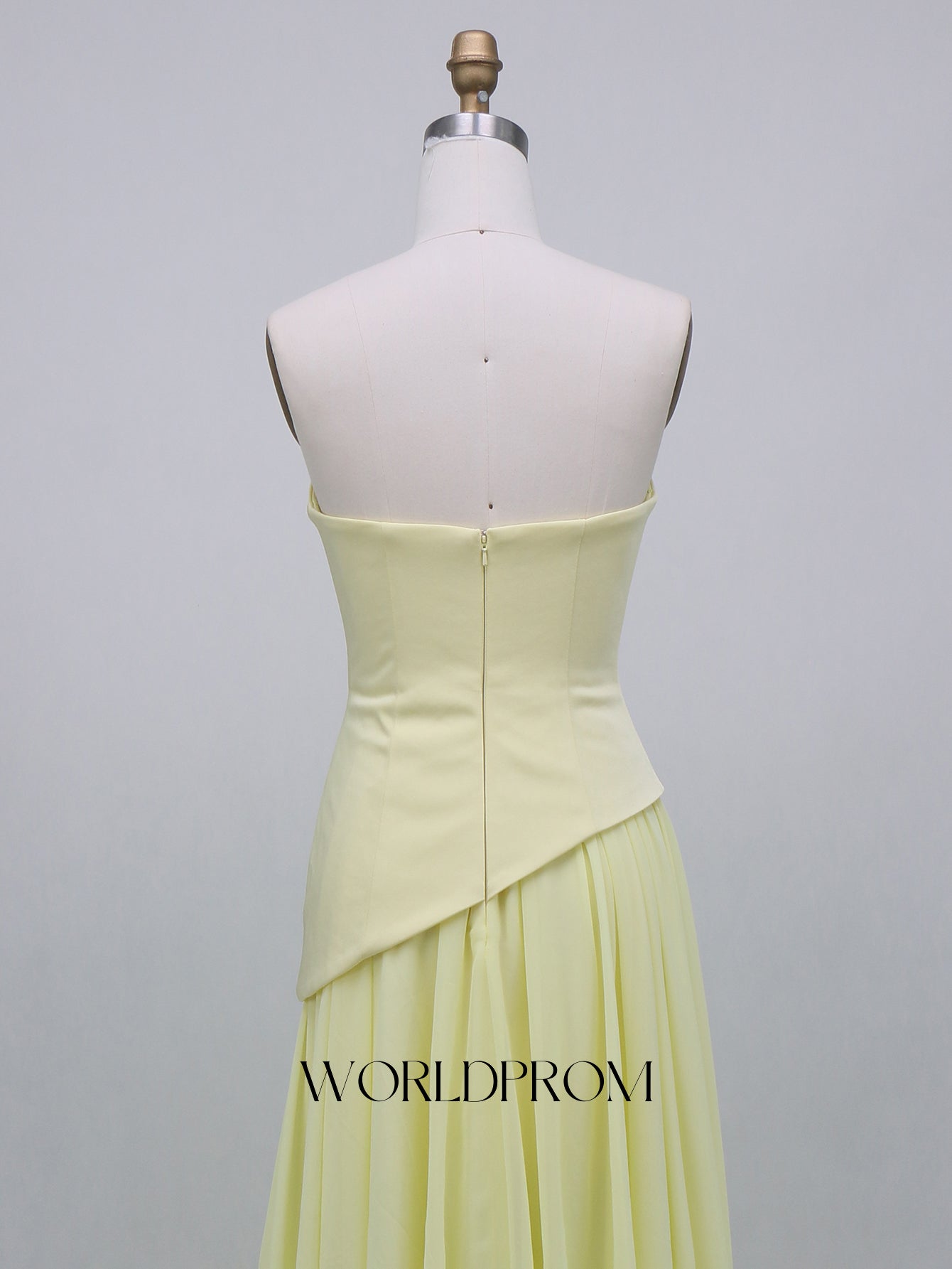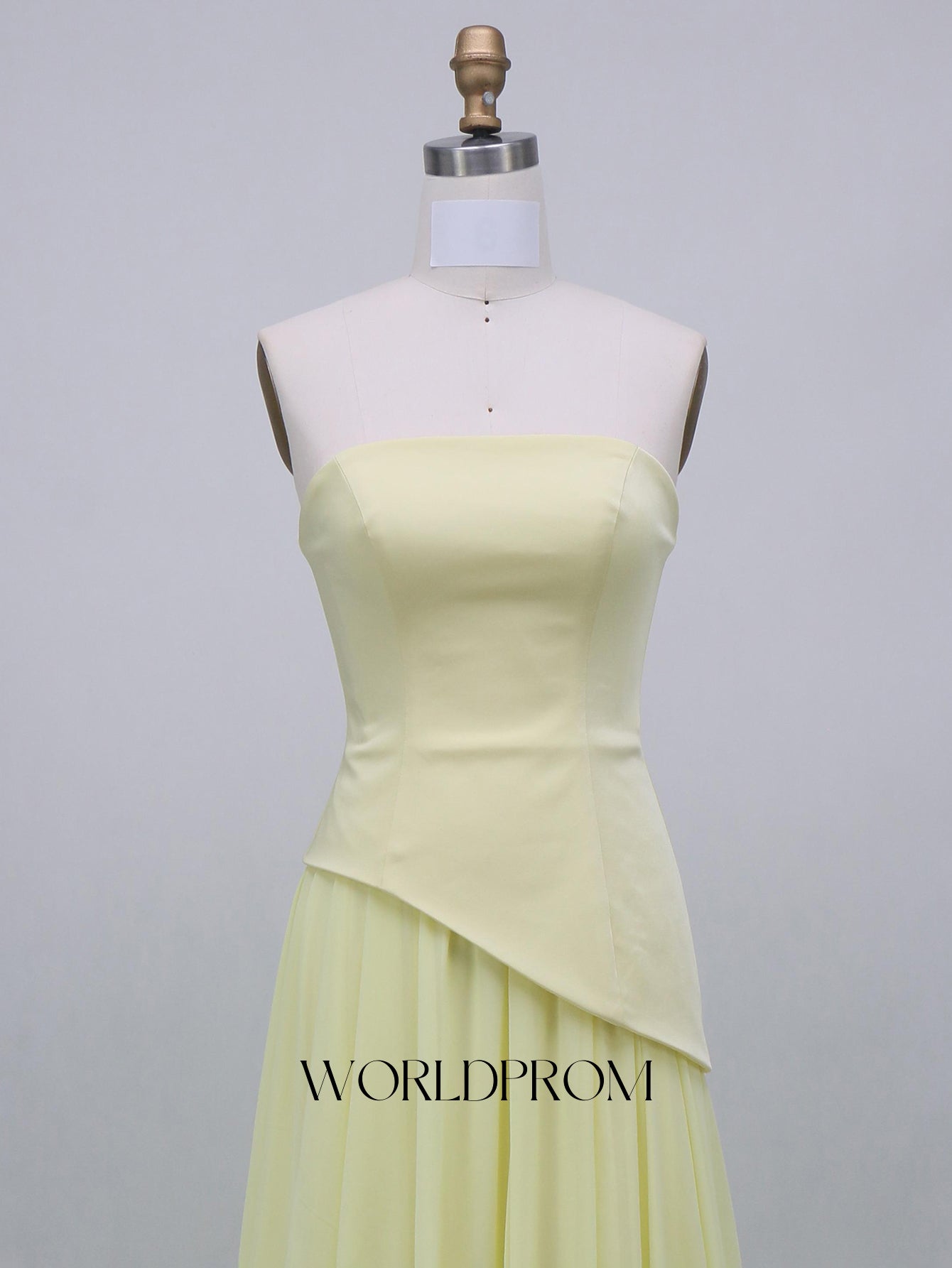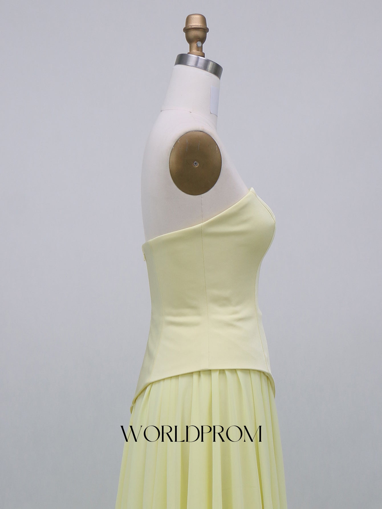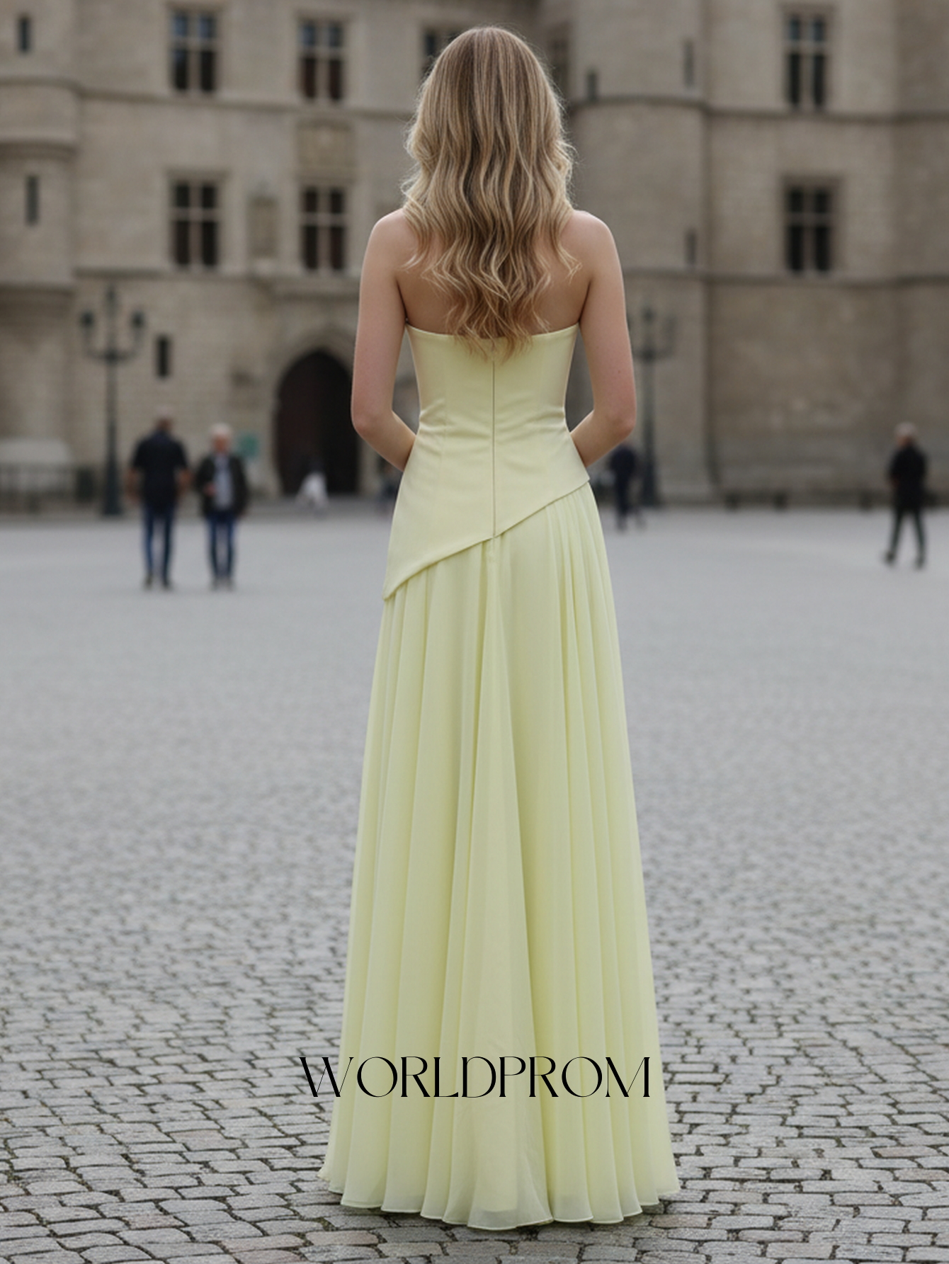 Strapless Corset Chiffon A-Line Long Prom Dress With Slit - Goose Yellow