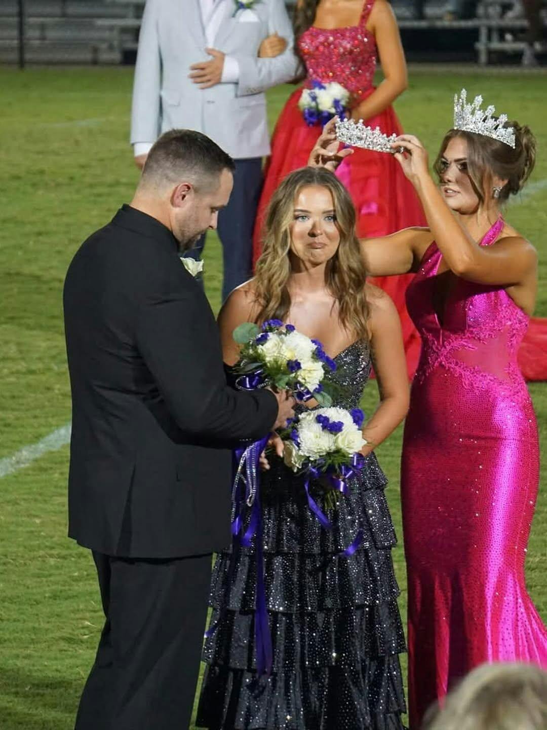 Cut Front Luxury Crystal Ruffle Ball Gown Prom Dress - Black