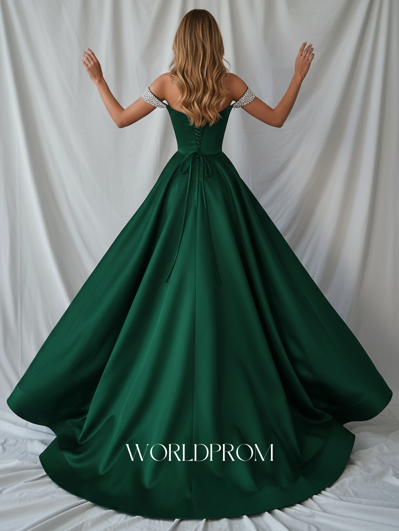 This satin evening dress features crystal bust on the bodice. The off shoulder maxi dress has a sweetheart neckline and pleated hem. Luxury ball gown dresses are ideal for party, evening or festivals.