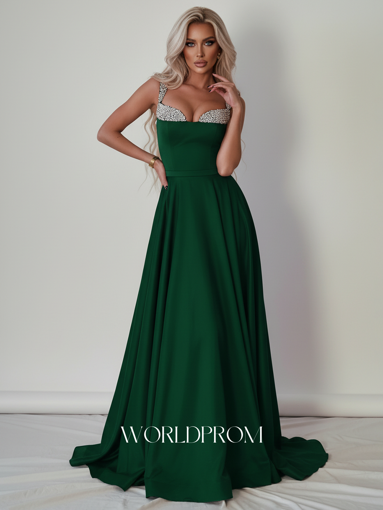 Luxury Crystal Ball Gown Long Prom Dress - Emerald Green