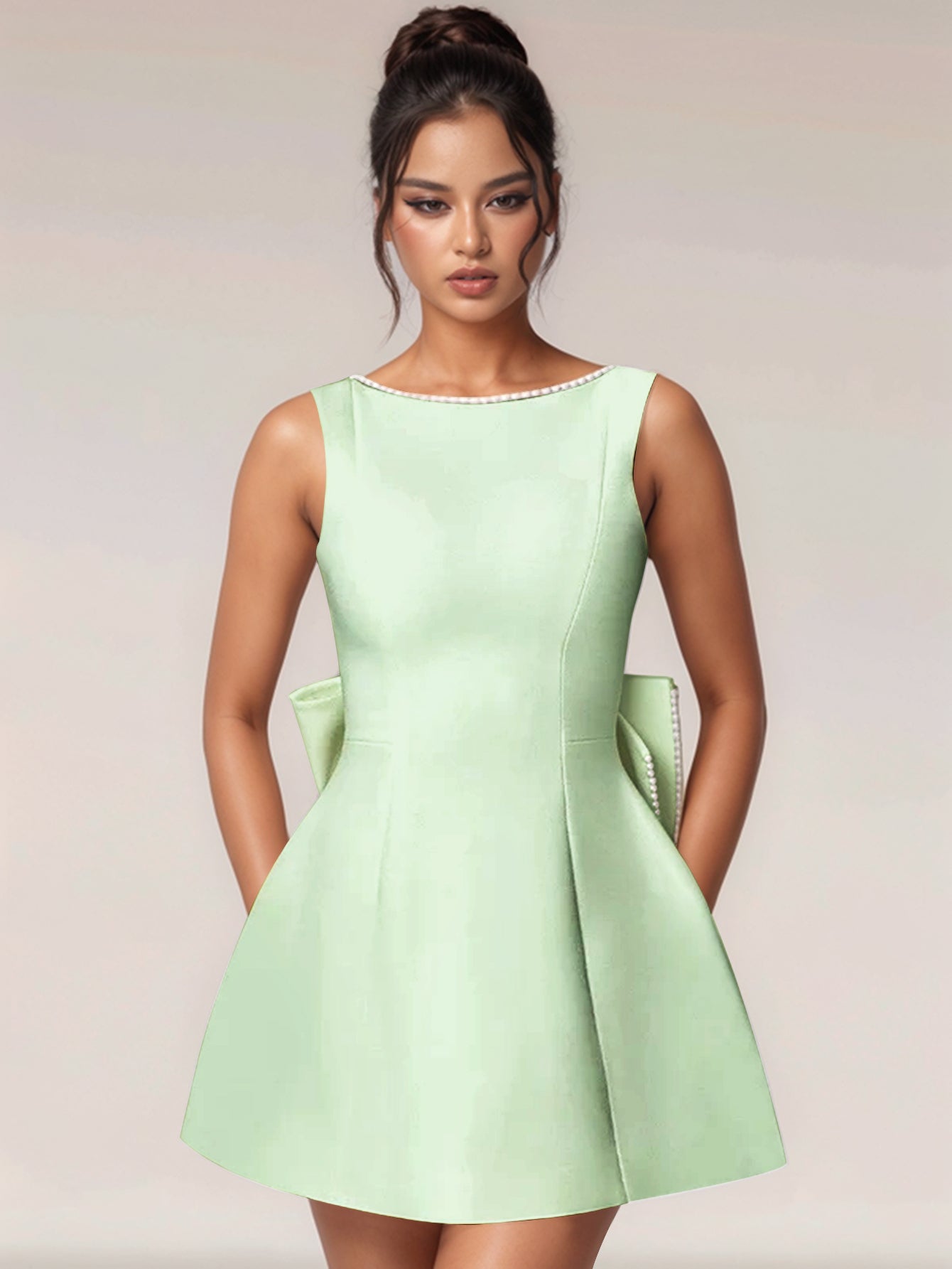 Hand Beading Backless Bow Ball Gown Prom Bridal Mini Dress - Mint Green