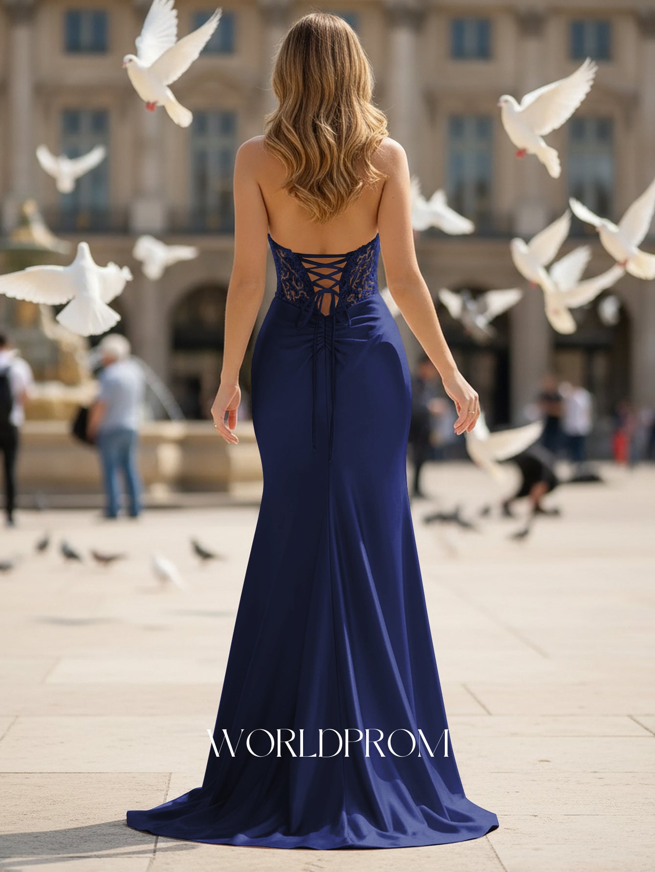 This satin prom gown features embroidery cut front on the illusion bodice. The halter dress has a deep V-neckline and split hem. Worldprom mermaid prom dresses are ideal for party, evening or festivals.
