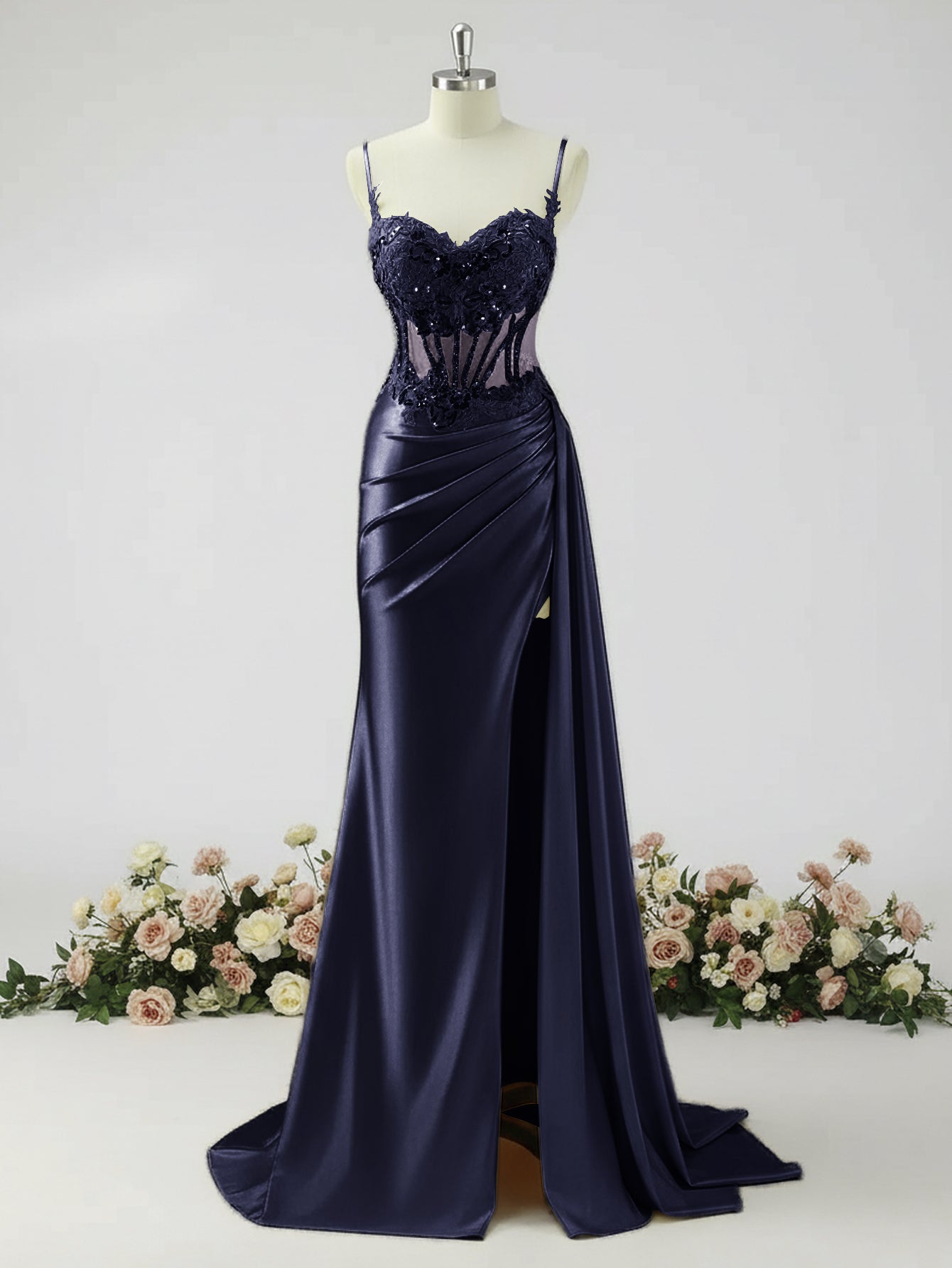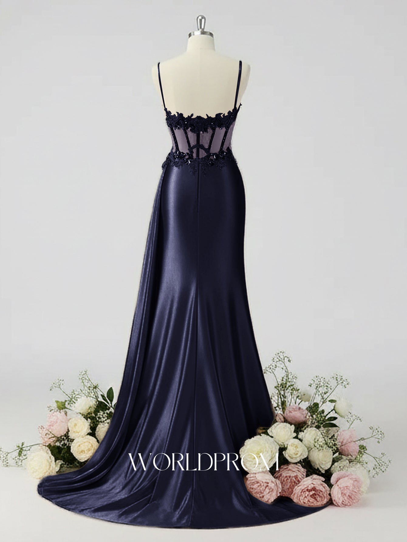 This satin prom gown features sparkly beading with sheer on the illusion bodice. The backless dress has a sweetheart neckline and split hem. Worldprom mermaid prom dresses are ideal for party, evening or festivals.