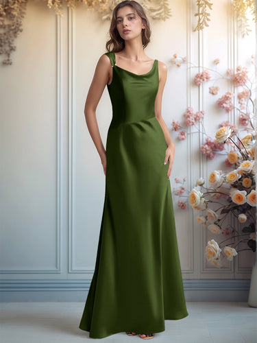 Scoop Satin Sheath Floor Length Bridesmaid Dress - Olive Green