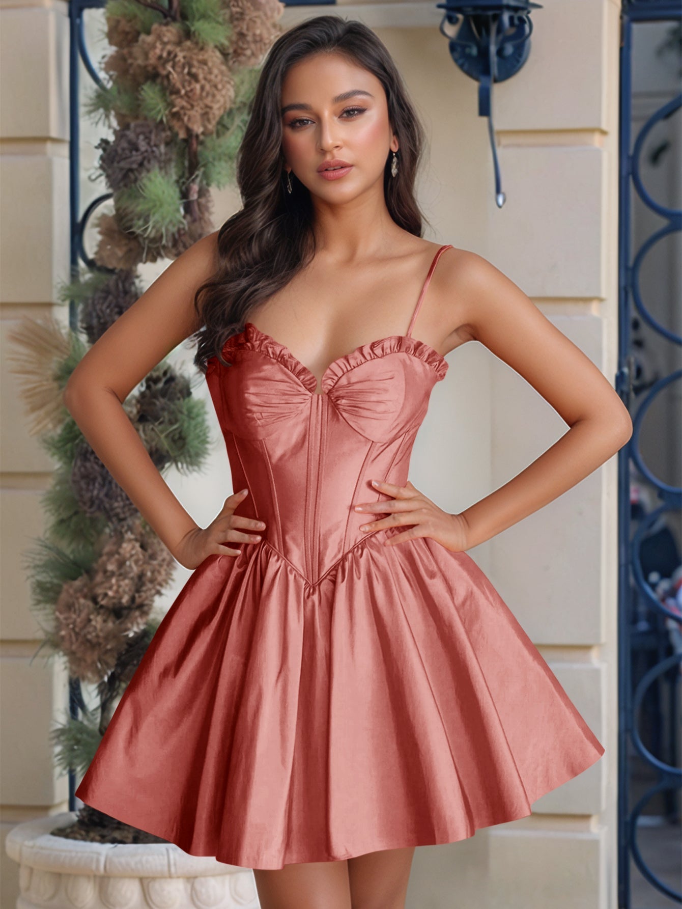 Sweetheart Boned Mini Ball Gown Prom Dress - Dusty Rose