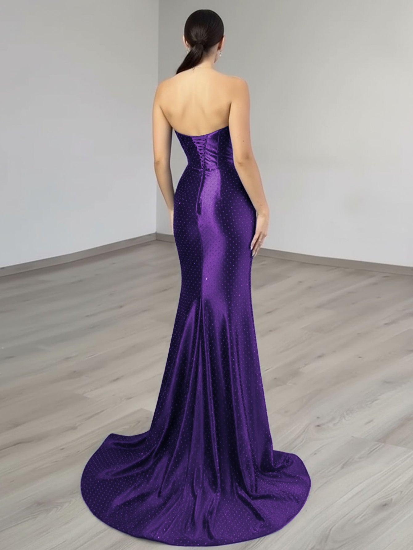 This luxury evening dress features satin with crystal on the bust. The strapless prom dress has a scoop neck and split hem. This dubai sexy evening dress is ideal for party, evening or homecoming events.