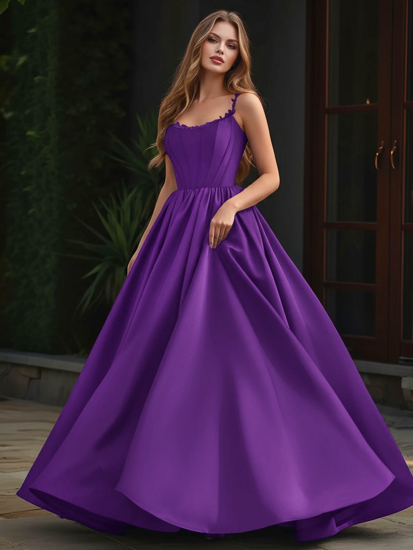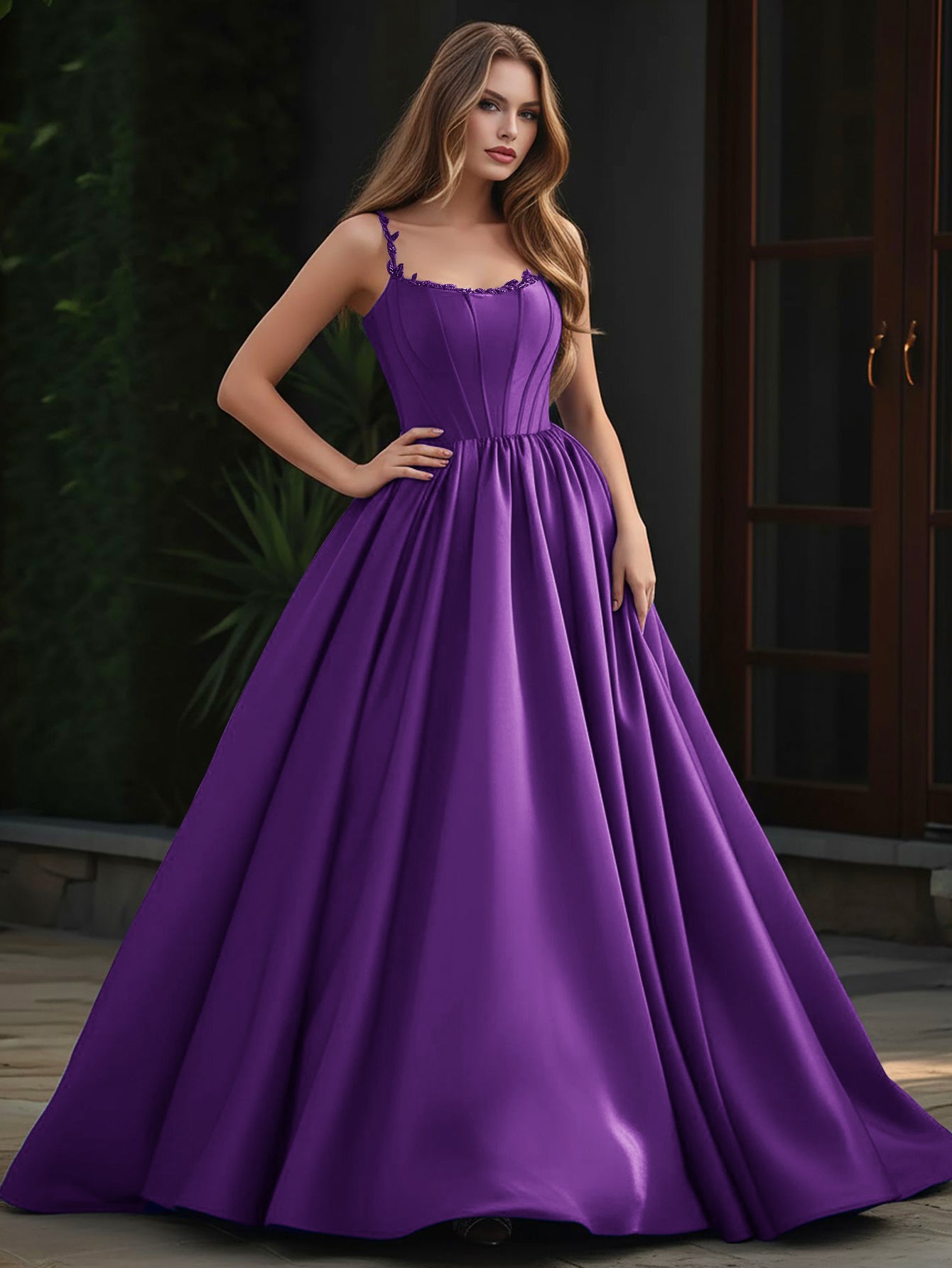 Spaghetti Straps Bodice Ball Gown Evening Dress - Purple