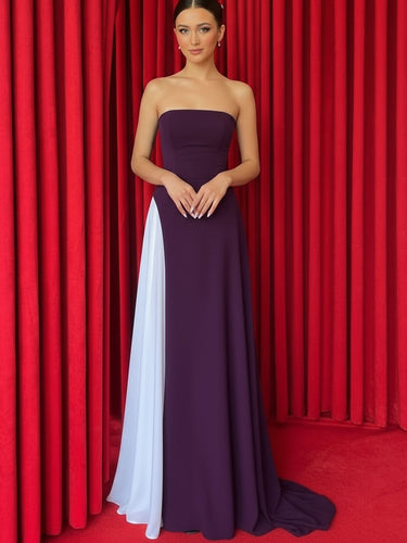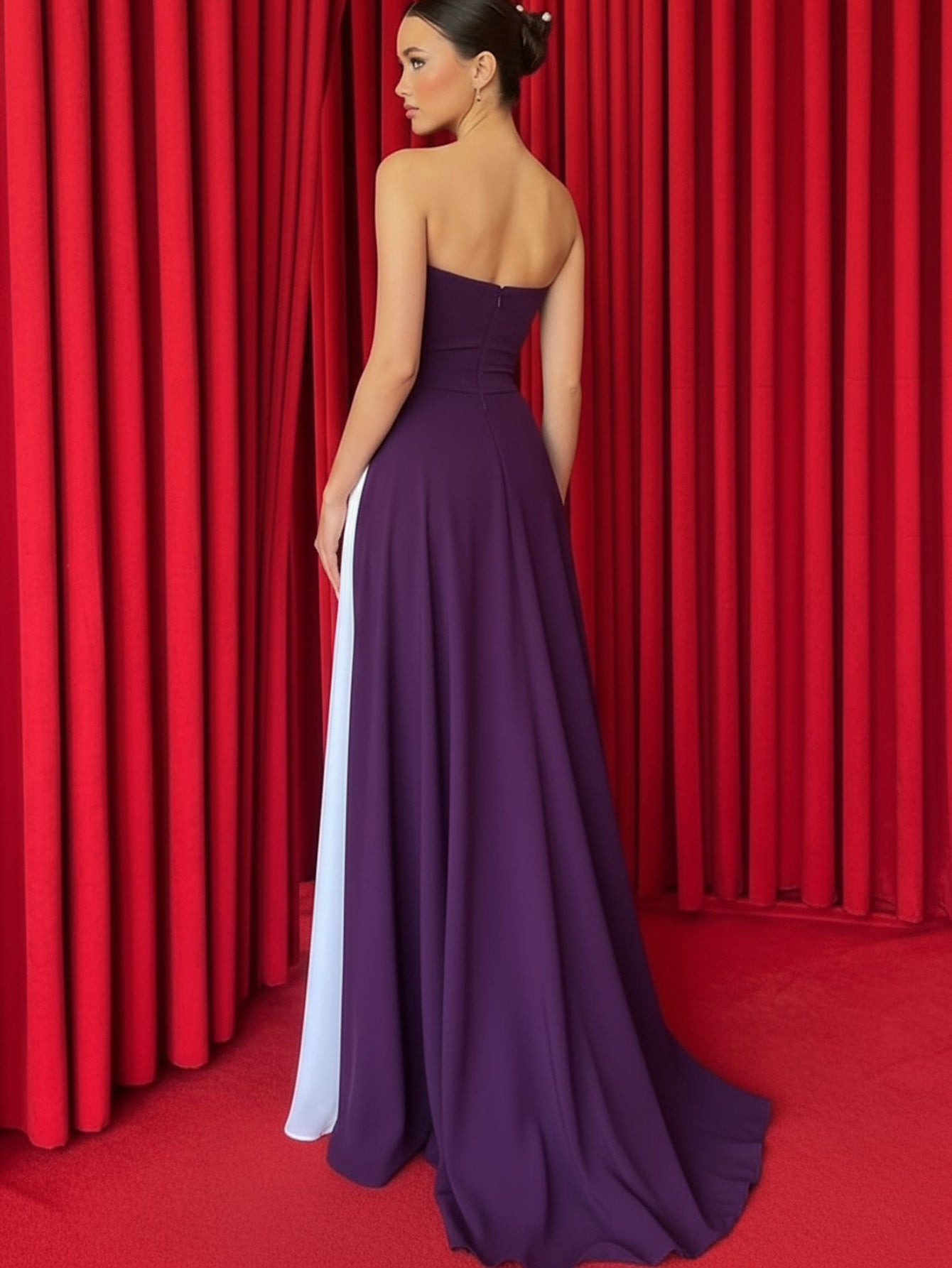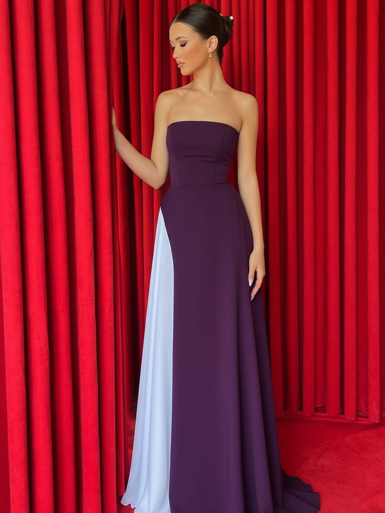 Two Pieces Strapless A-Line Long Prom Dress - Purple