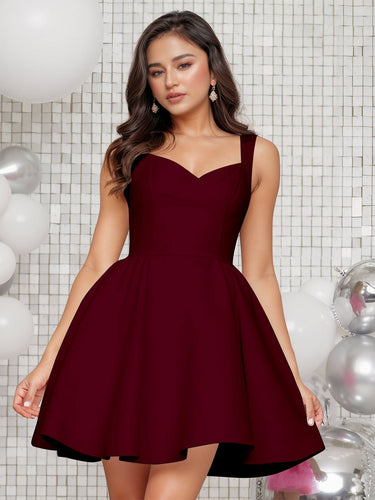 Sweetheart Tank Top Mini Ball Gown Prom Dress - Burgundy