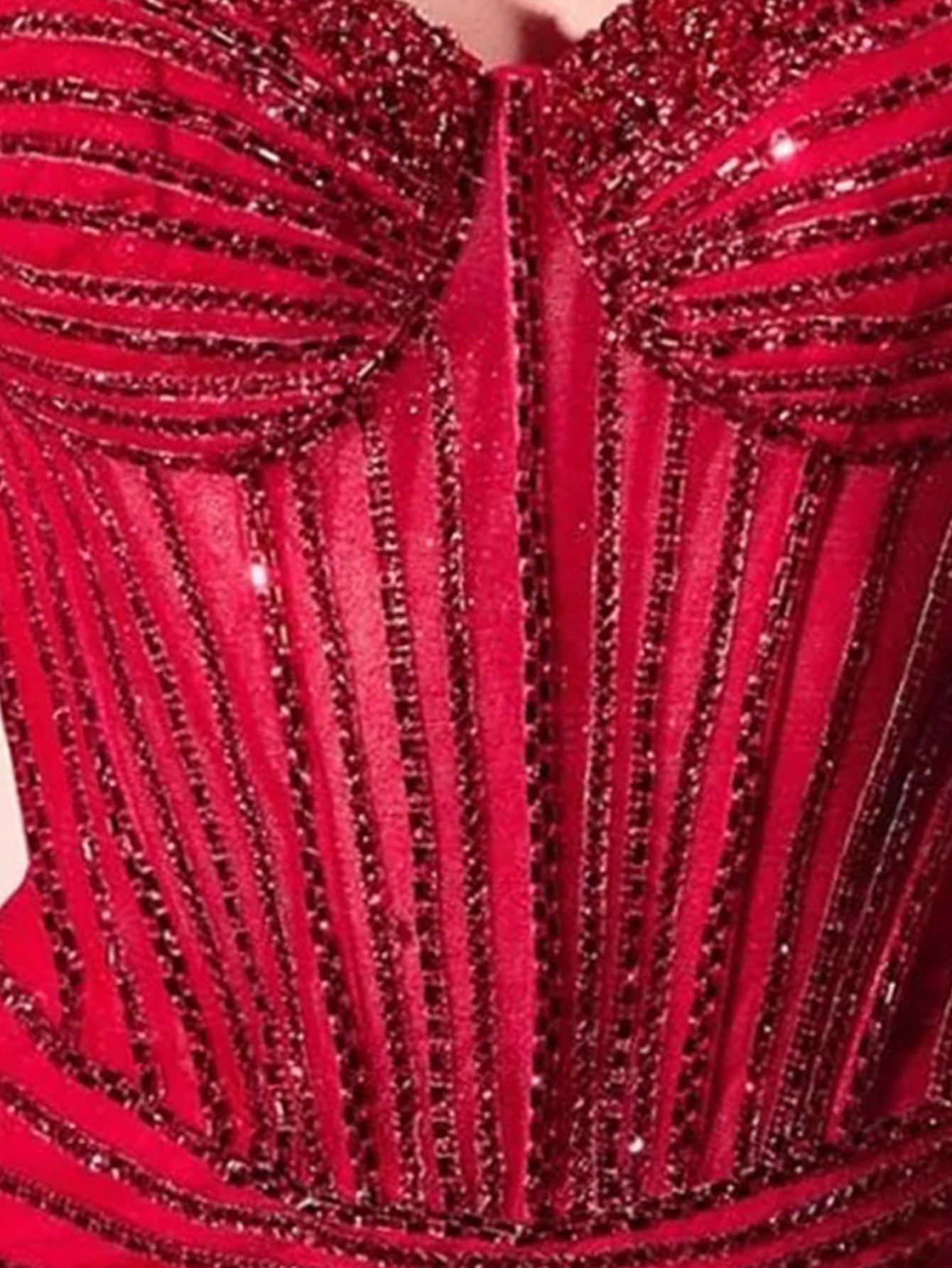 This crystal dress features tassels beading with sheer on the illusion bodice. The off-shoulder dress has a sweetheart neckline and split hem. Mermaid luxury prom dresses are ideal for party, evening or festivals.