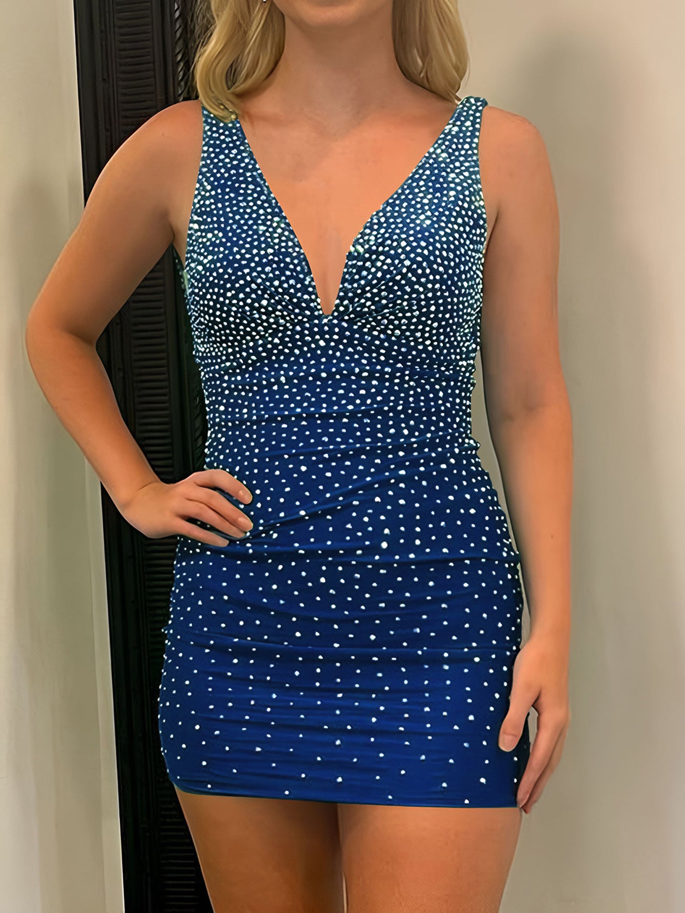 Hot Fix Deep V-Neck Sheath Mini Prom Dress - Royal Blue