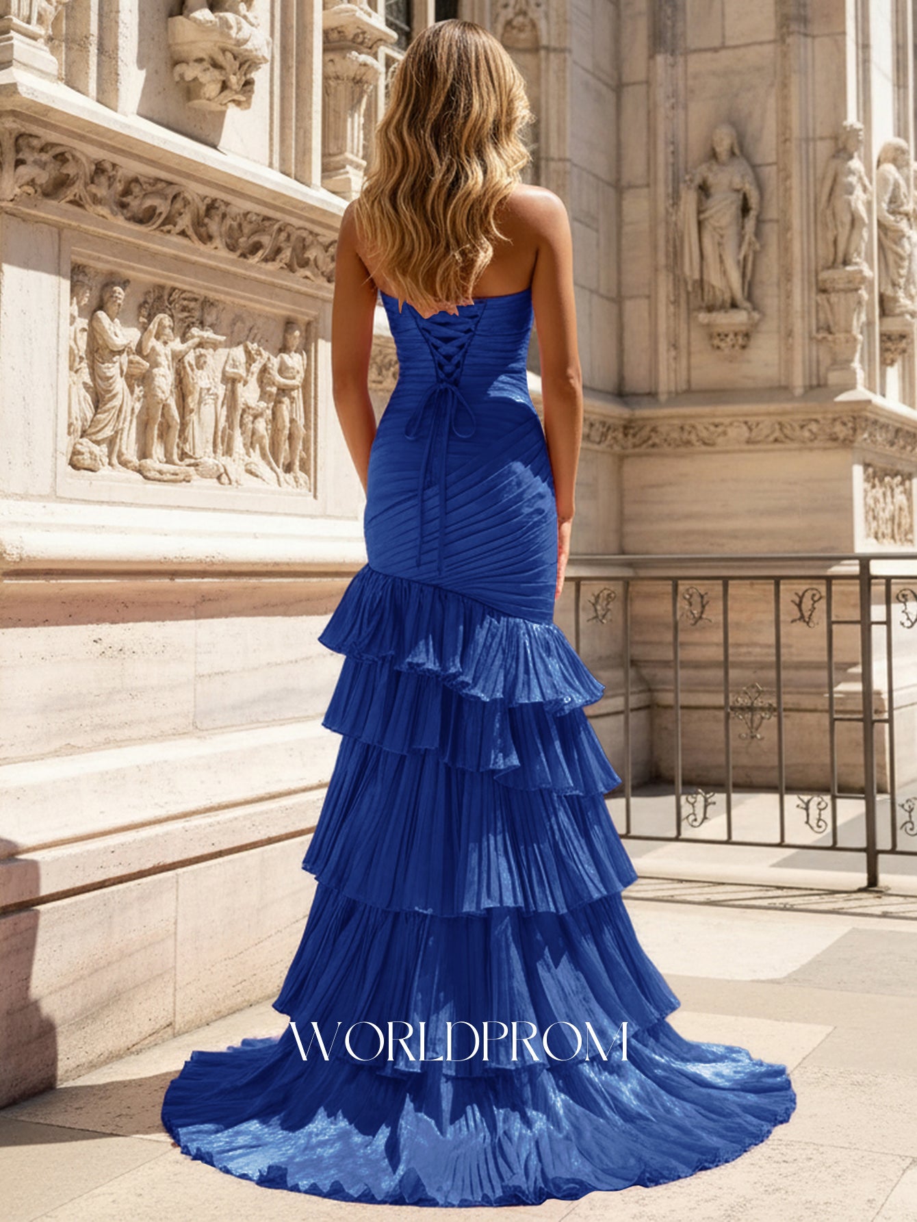This satin prom gown features sparkly beading and cut front with bow back on the bodice. The strapless dress has a sweetheart neckline and ruffled pleated hem. Worldprom mermaid prom dresses are ideal for party, evening or festivals.